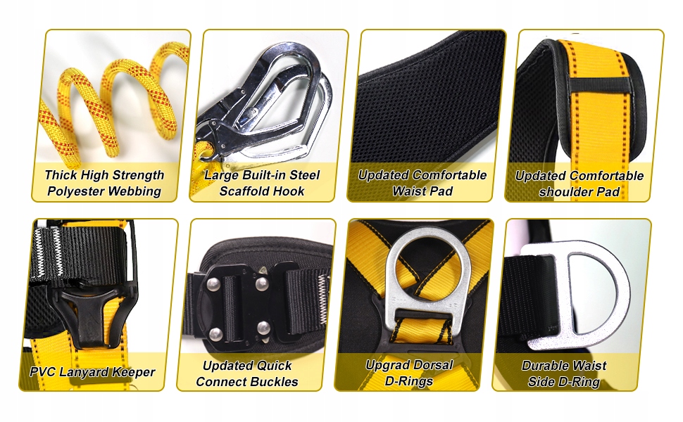 В соответствии с самыми высокими мировыми стандартами, эта привязь для защиты от падения оснащена 4 быстроразъемными пряжками, которые позволяют пользователям быстро надевать и снимать. Когда пользователи надевают перчатки или другое защитное снаряжение, эта быстросъемная пряжка помогает им отрегулировать привязь по размеру тела и сэкономить время.