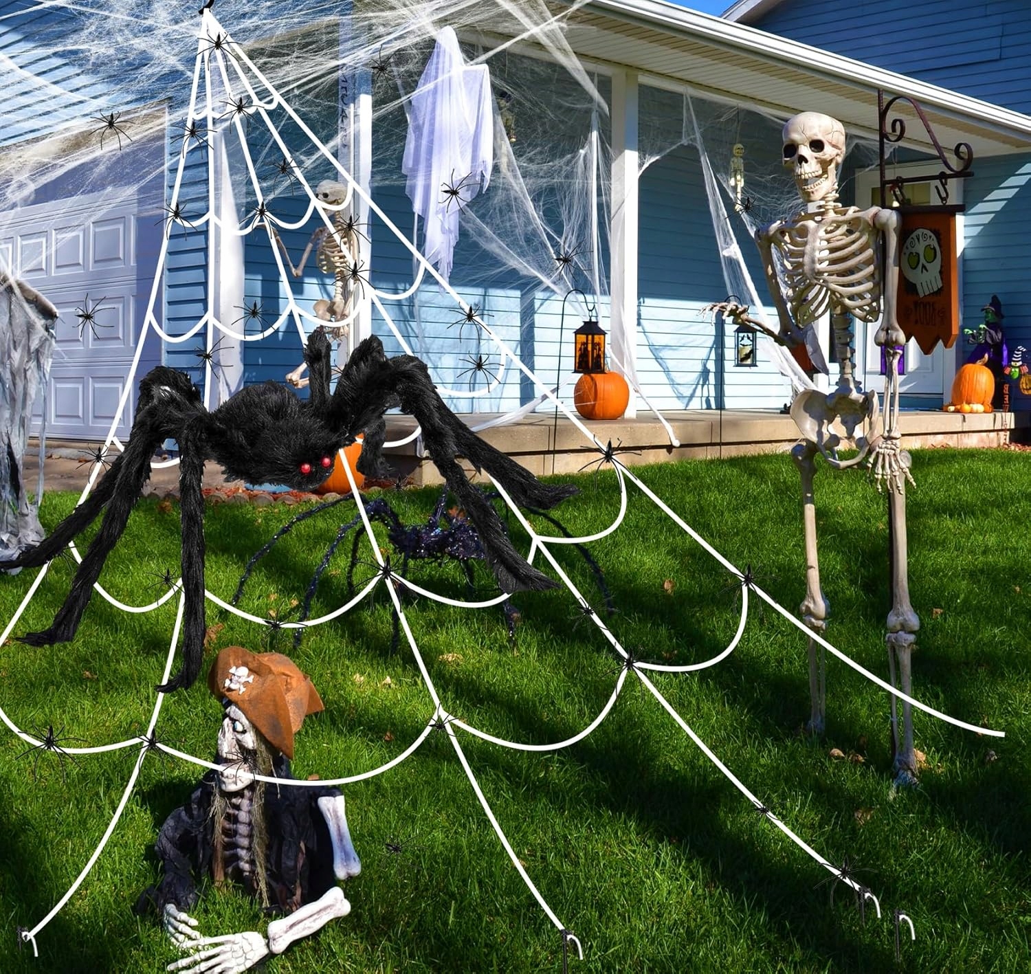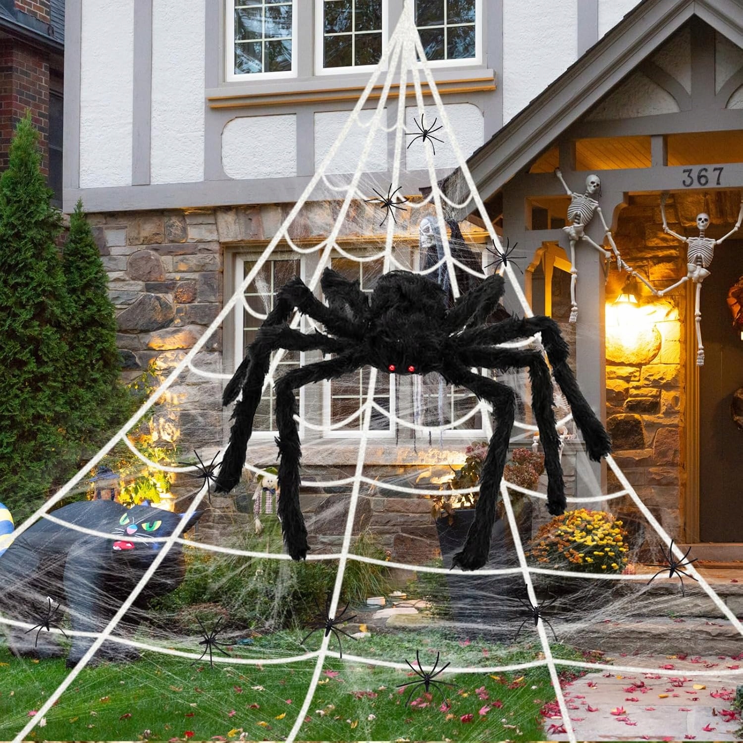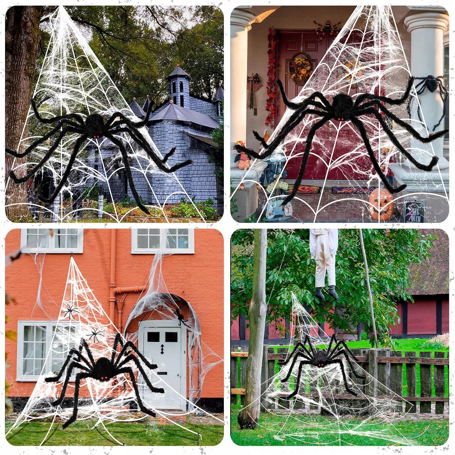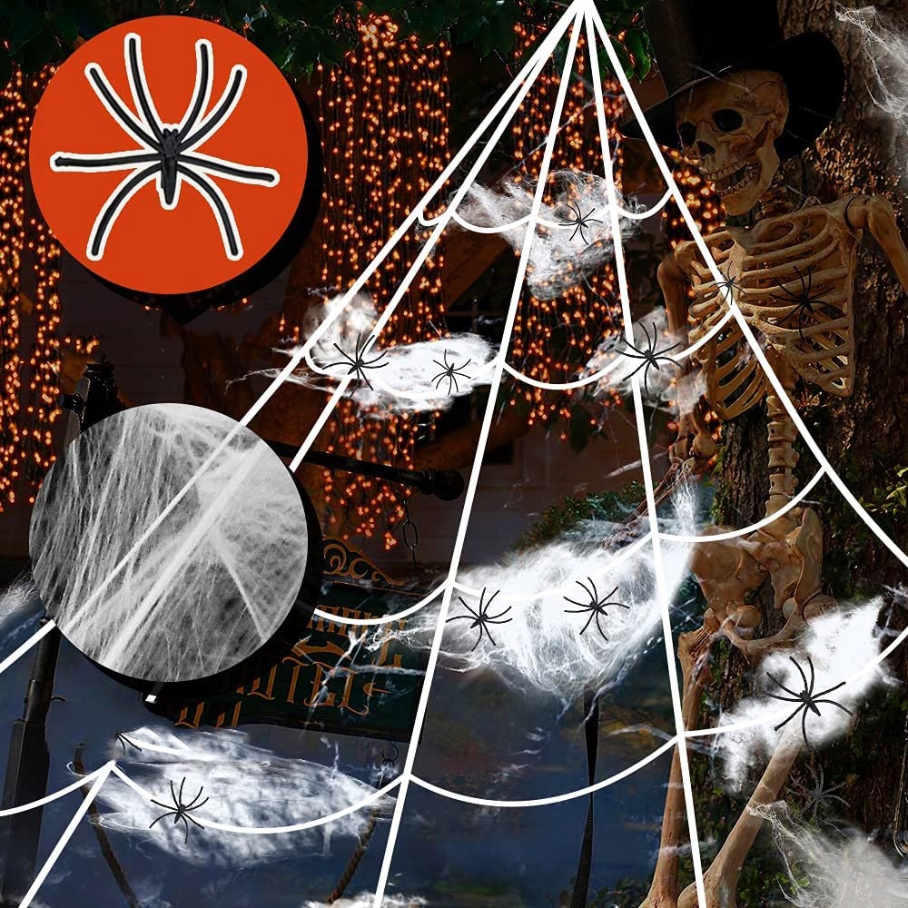 — в комплект входит 1 крюк для желоба, 1 банджи-шнур и 5 кольев для вбивания в землю. Нашего паука можно складывать и сгибать, что позволяет легко выставлять его напоказ, хранить и размещать где угодно. Легкая белая паутина с крючком очень прочная и долговечная, ее легко прикрепить к стене. Идеально подходит для костюмированных вечеринок на Хэллоуин, школьных мероприятий и других представлений.