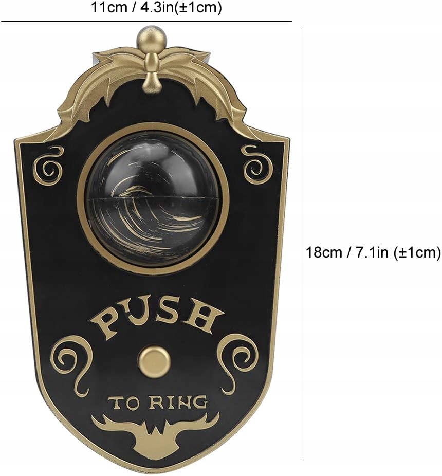 ОК. 14 x 5 x 20 см. После нажатия этого обычно незаметного колокола анимированный глаз зомби смотрит на неподготовленного гостя.