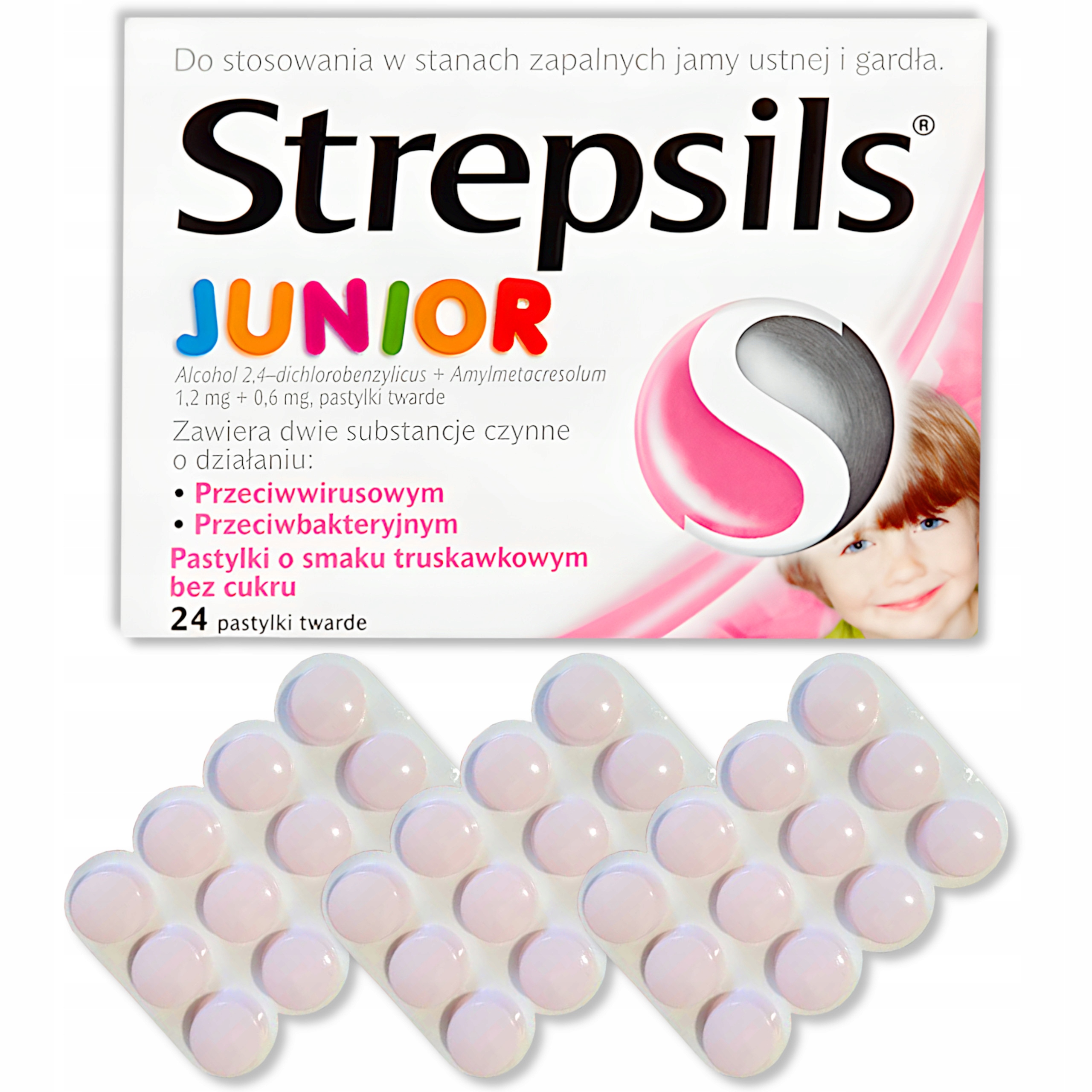 Стрепсілс Юніор 1,2 мг+0,6 мг без цукру 24 шт.