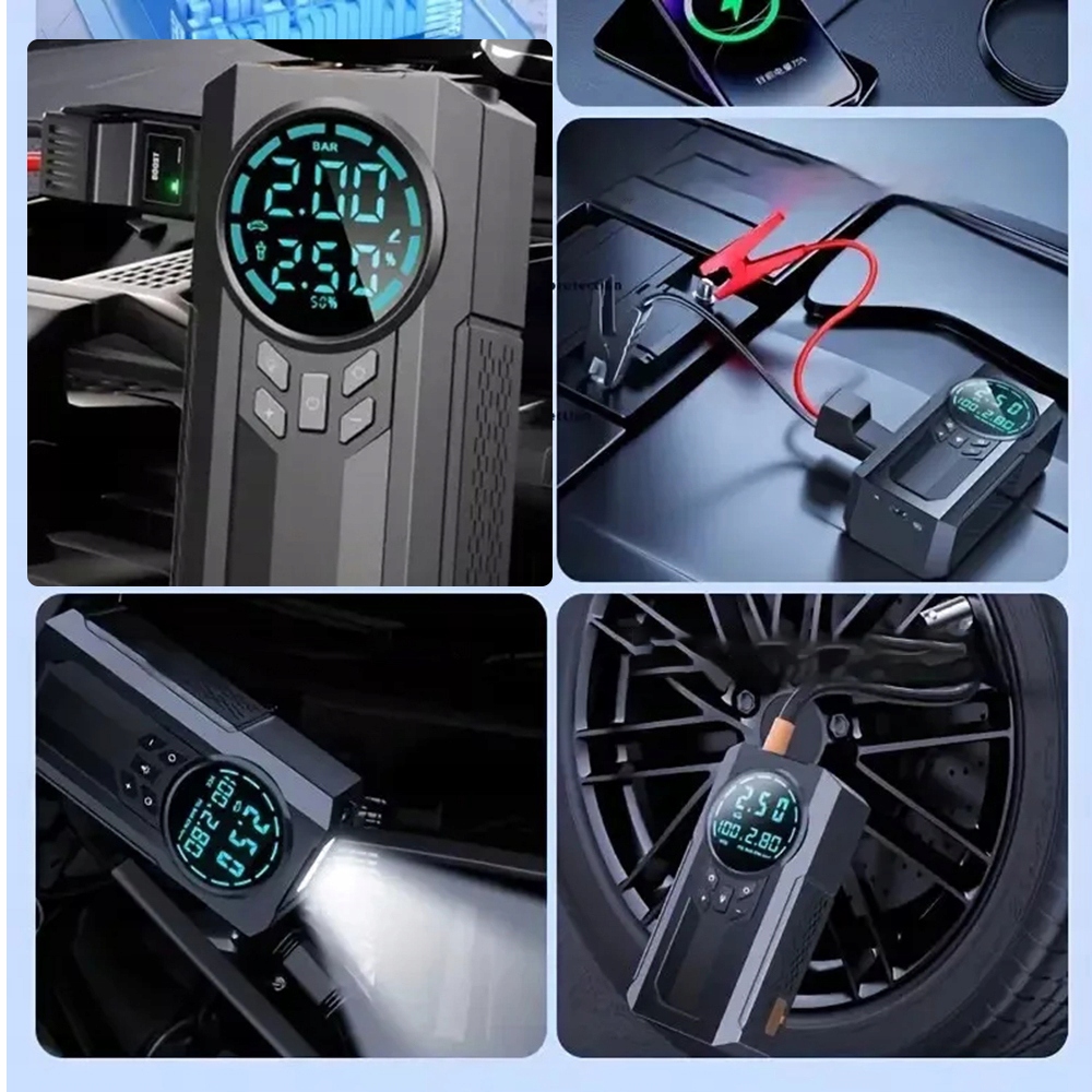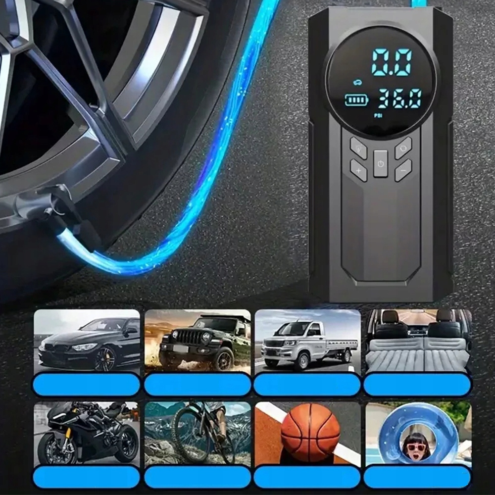 - Портативный насос шин был разработан с помощью эффективного чипа и нанесения батареи для быстрого накачки шин и быстрого потока воздуха.