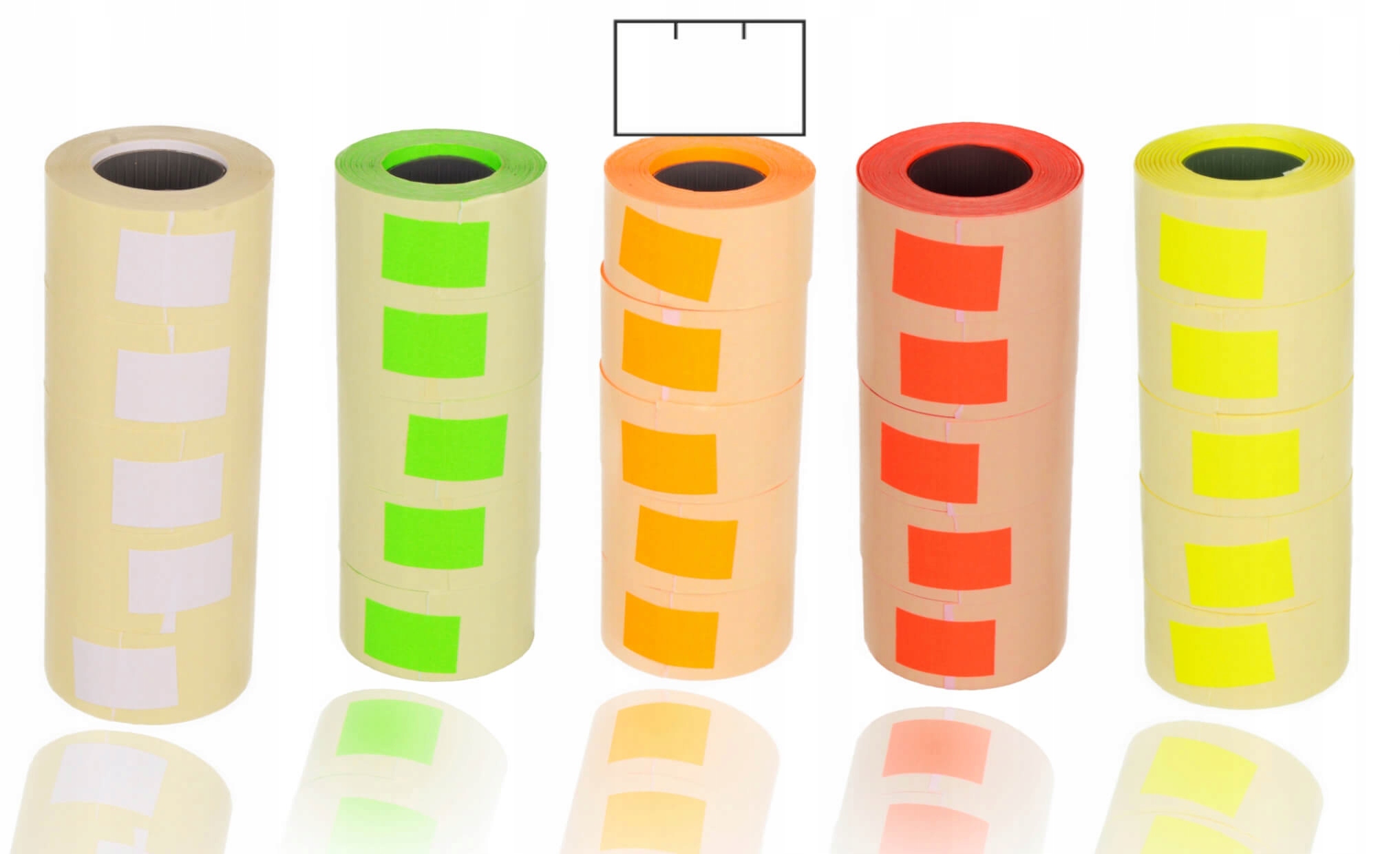Лента для двухрядных этикетировочных машинj выбранного цвета подходит для большинства двухрядных этикетировочных машин, представленных на рынке, а также может использоваться для ручного наклеивания цен на продукцию.