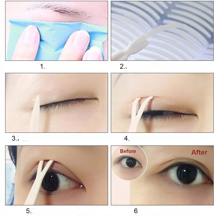 закройте глаз, приклейте наклейку ниже того места, где вы хотите, чтобы была складка на плоской коже века и все.