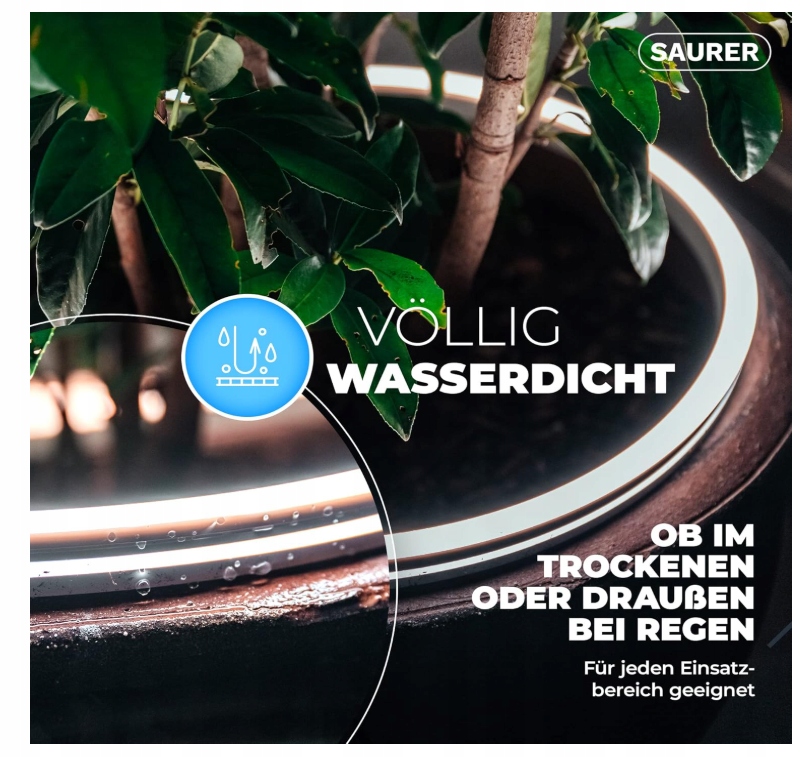 Светодиодное наружное освещение SAURER, наружное освещение деревьев, садовое освещение с питанием от электричества, уличный светодиодный прожектор для растений, деревьев и т. д., идеально подходит для украшения террасы, длина ленты 95 см