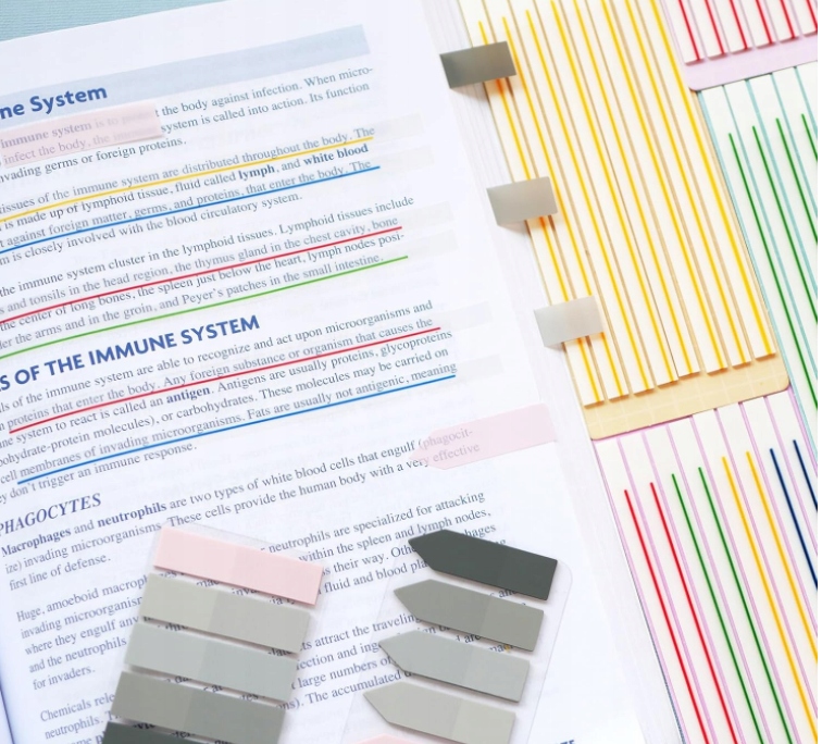 - Полоски для выделения книг Эти эстетически приятные полоски для выделения книг имеют прозрачный дизайн, поэтому вы можете видеть сквозь них ленточный маркер или текст под ним, который помогает размечать и размечать страницы, вместо выделения маркерами, которые