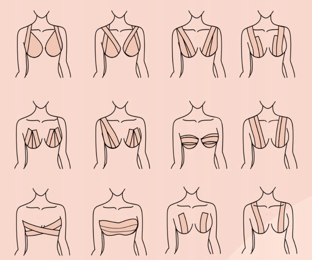 Далее приведены несколько примеров техник наклеивания бюста в зависимости от крой наряда, который мы наденем в данный день.