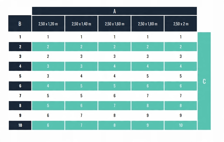 3. Посмотрите по таблице, сколько рулонов оградительной ленты вам следует заказать.