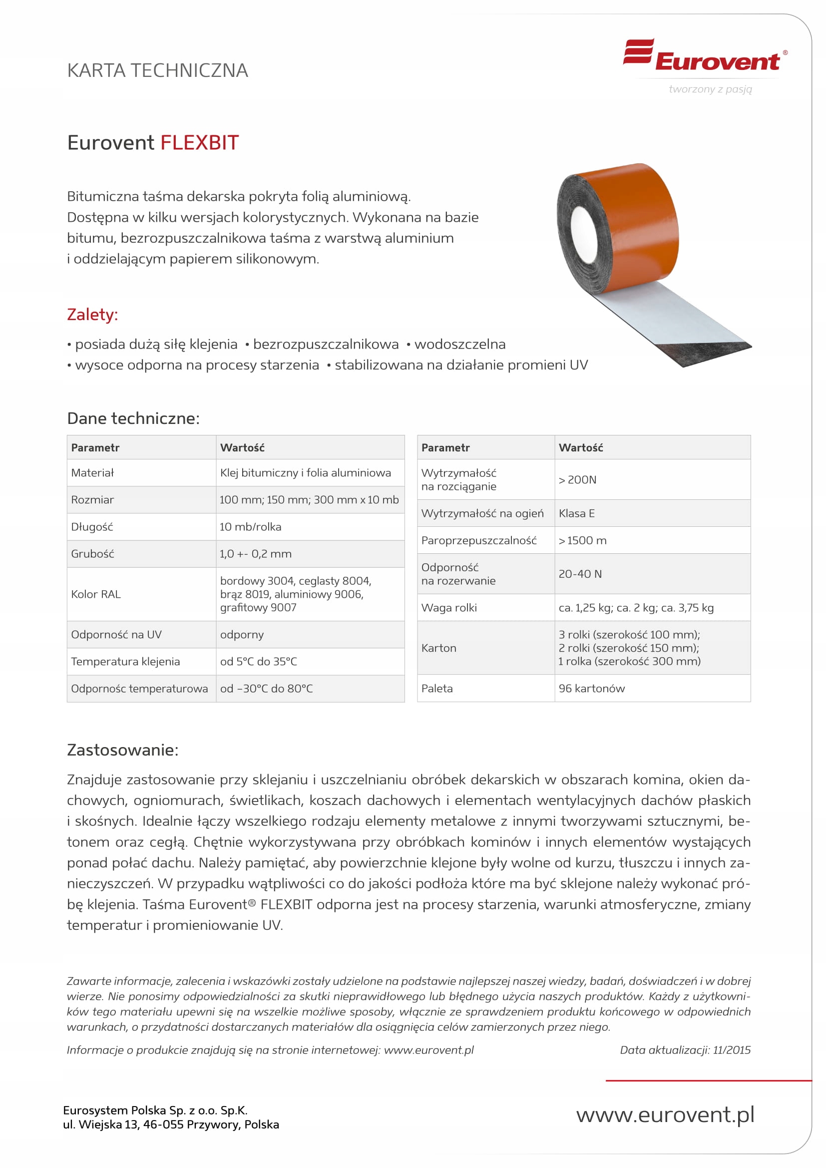 Битумная кровельная лента, покрытая слоем алюминия для прилипания и герметичной кровельной обработки в плоских и наклонных областях крыши. Доступно в нескольких цветных версиях. Сделано на основе битума, нерелифийской ленты с алюминиевым слоем и разделяющей силиконовой бумагой.