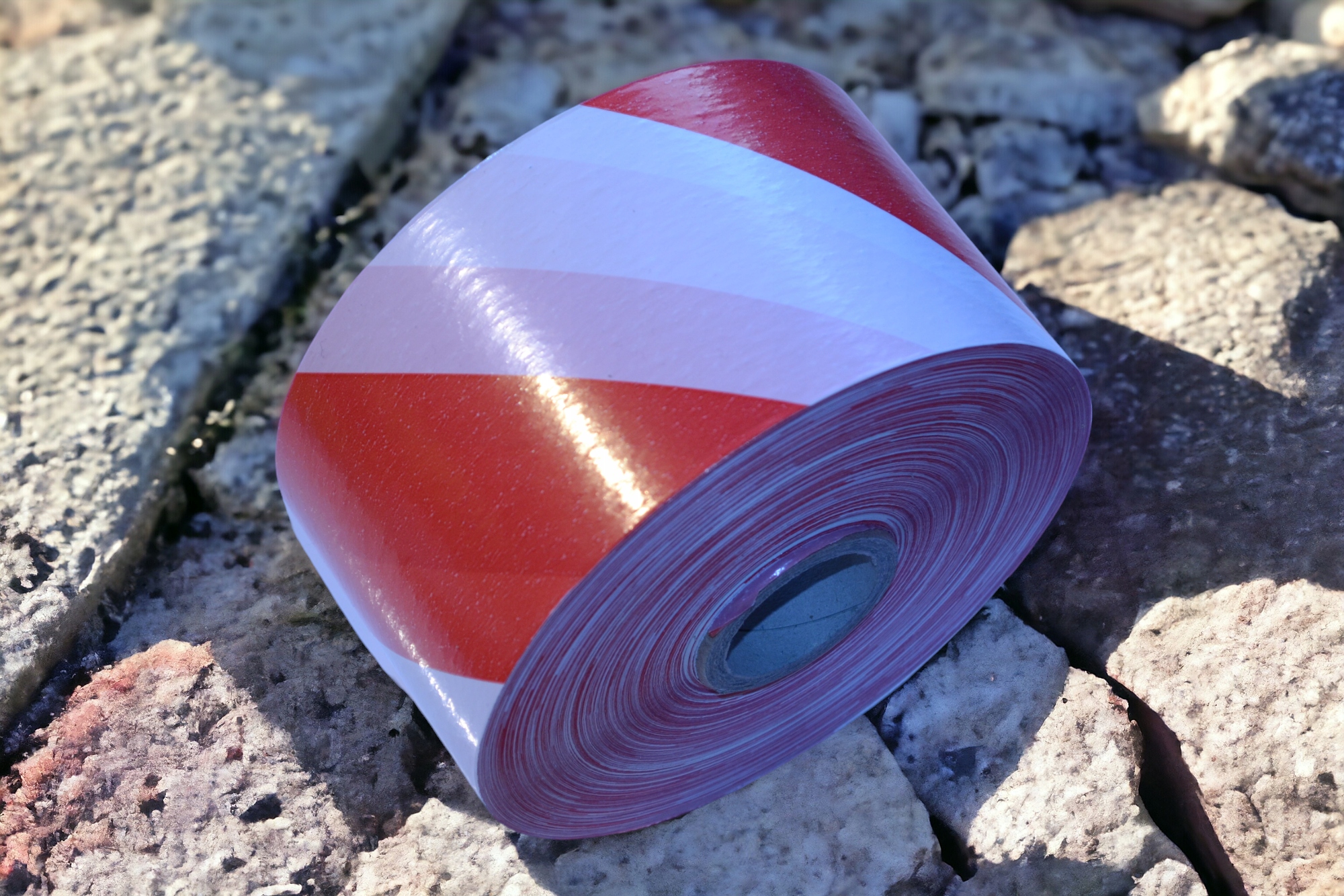 СТРІЧКА ПОПЕРЕДЖЕННЯ біло-червона 500 М 70ММ МАРКУВАННЯ OHS