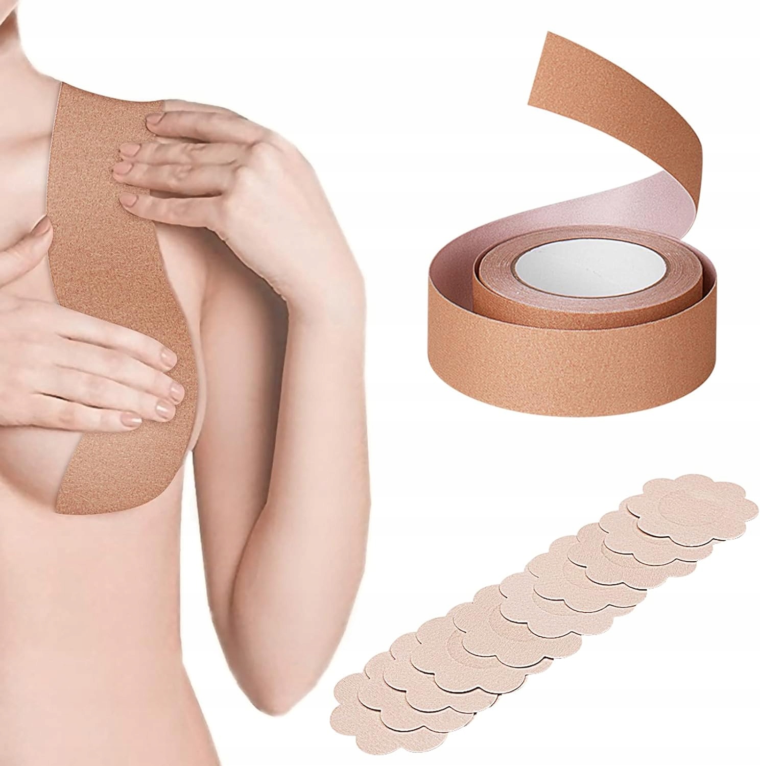 - Отличная поддержка груди: Кинезио тейп бежевого цвета создан для приподнятия и поддержки груди под любой одеждой. Забудьте о бюстгальтерах