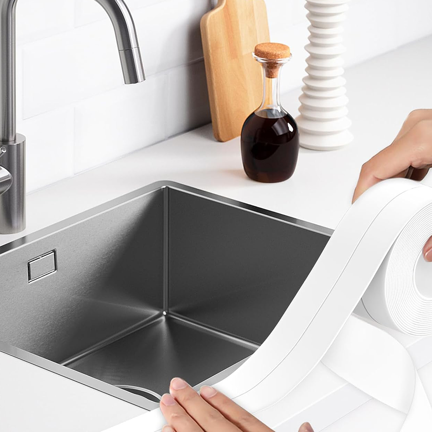 Широкое применение: каждый рулон самоклеящейся ленты для герметизации ванны имеет длину 320 см и может использоваться, в том числе, на кухне и в ванных комнатах. на варочных панелях, мойках, раковинах, ваннах, унитазах и стенах. Он украсит кухню и ванную комнату и надолго сохранит чистоту и порядок в доме.