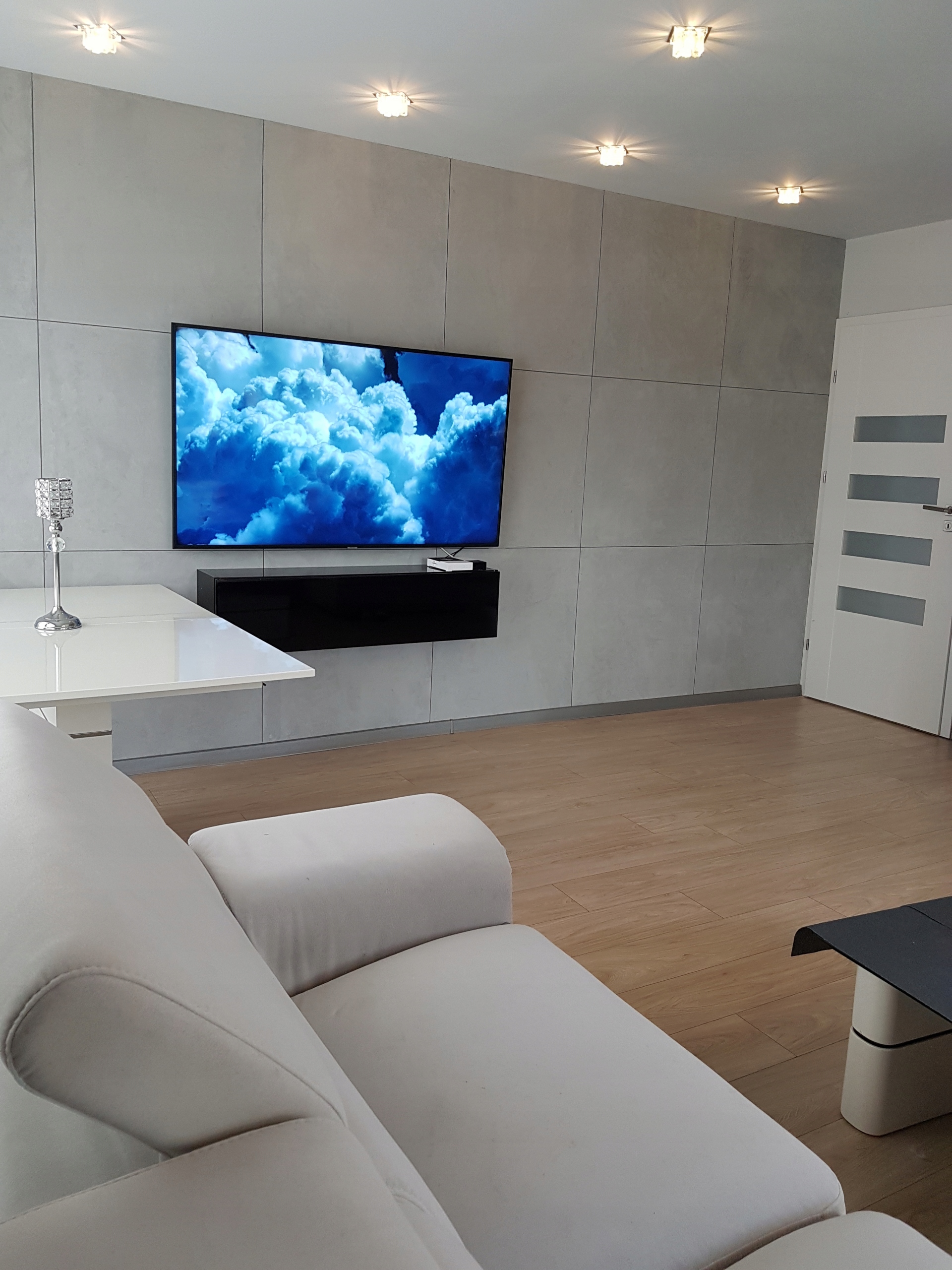Лента идеально подходит для достижения эффекта бетонных плит на стене.