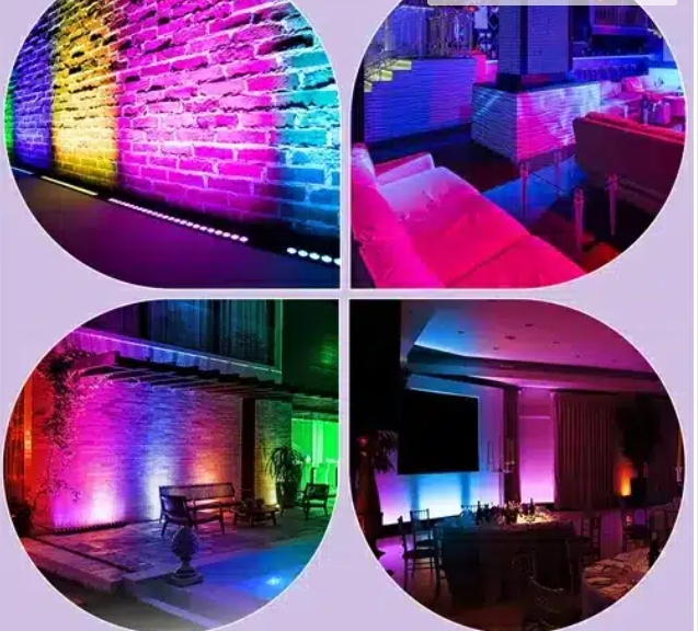 Цветовые эффекты: красный, зеленый, синий, желтый, фиолетовый, синий, белый.