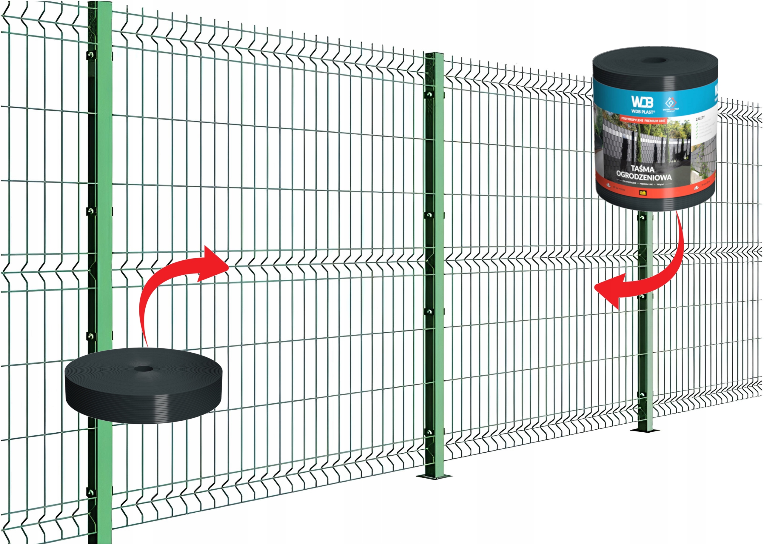 Ленты WDB PLAST® доступны в двух стандартных ширинах: 19 см и 47,5 мм, что делает их подходящими для всех обычно предлагаемых 2D и 3D панелей заборов. Они подходят как к панелям марки Wiśniowski, так и к пролетам многих других производителей, популярных в Польше и за рубежом.