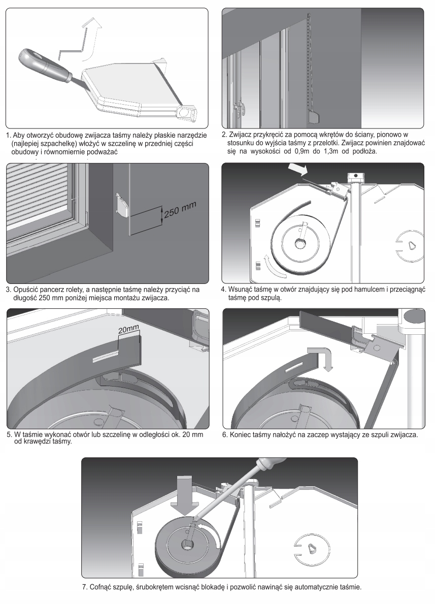 - Втягивающее устройство вмещает максимум 6 метров ленты, что достаточно для работы рулонной шторы высотой примерно 2200 мм