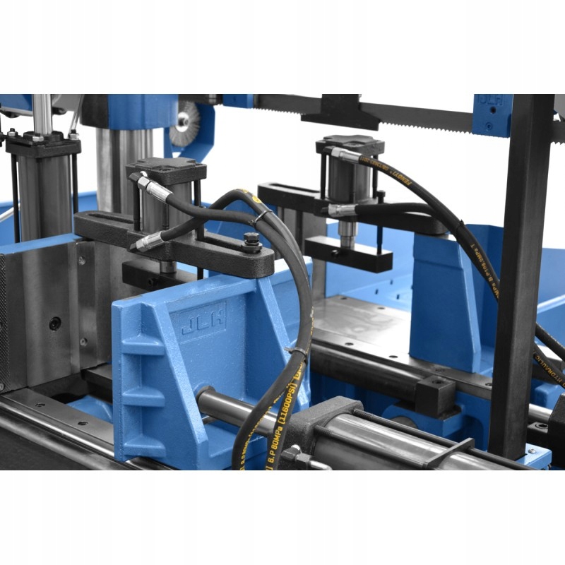 Привод режущей ленты на основе двигателя с инверторным управлением обеспечивает плавное регулирование в широком диапазоне скоростей. Гидравлическое натяжение ремня обеспечивает оптимальные условия его эксплуатации. Если пила сломается, станок автоматически остановится. Точное ведение ленты обеспечивают направляющие, состоящие из направляющих подшипников и твердосплавных вставок.