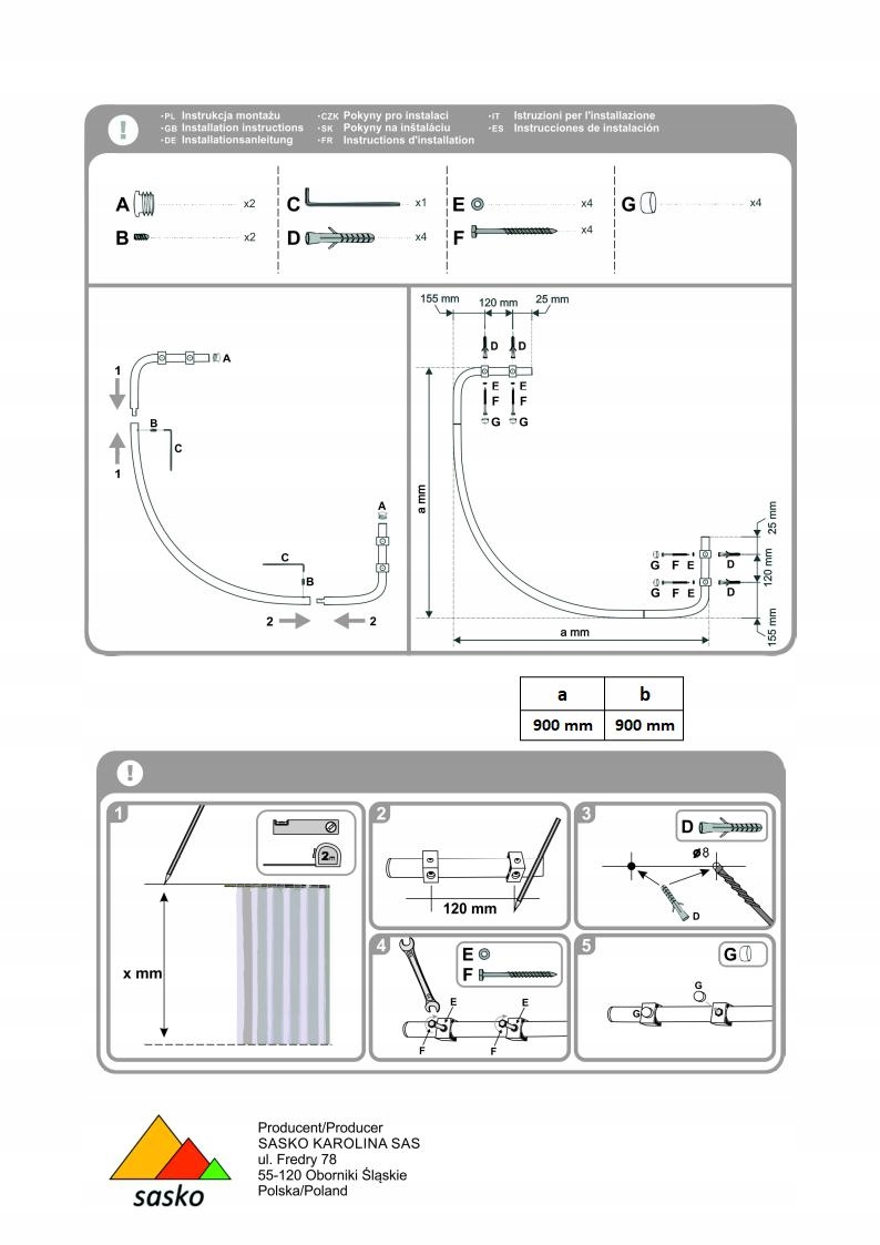 СТЕРЖЕНЬ ЗАНАВЕСКИ ДЛЯ ДУША АРОЧНЫЙ ДУШЕВОЙ ПОДДОН 90X90