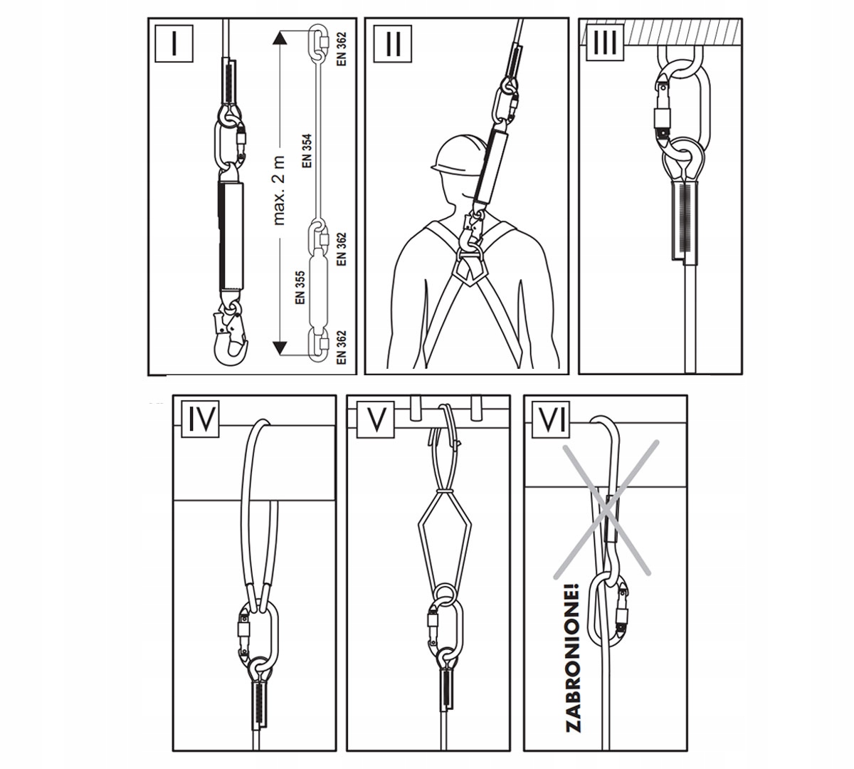- PN-EN 354 – Индивидуальное оборудование, защищающее от падения с высоты. Страховочные тросы.