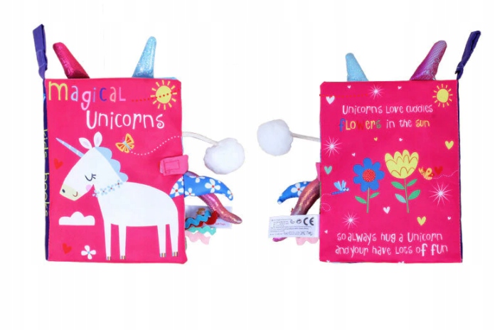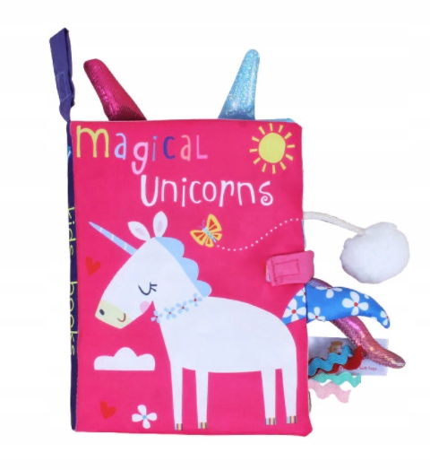 Мультисенсорная развивающая книга для самых маленьких, история о волшебных единорогах со специальным дополнением - хвостами с разными фактурами и материалами.