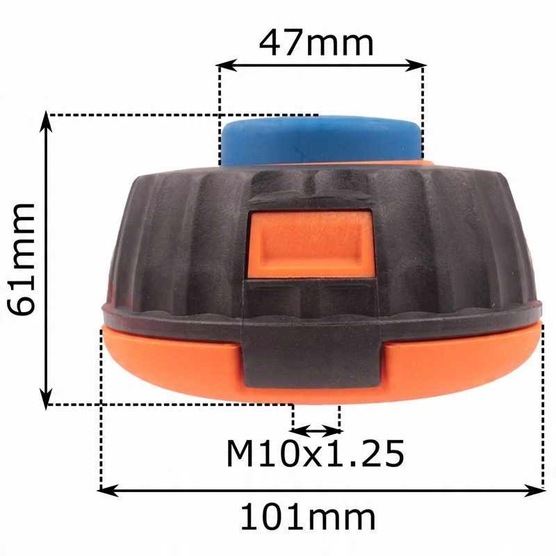 Барабан со струной, используемый в коммерческих и профессиональных бензиновых кусторезах. Головка установлена на шестерне М10 с шагом 1,25 (большинство коммерческих кос на рынке). С помощью адаптеров, входящих в комплект, его можно также установить на М8 с левой резьбой, М8 с правой резьбой, как у кусторезов MAKITA, и М10 с шагом 1,0, как у кусторезов STIHL /b>