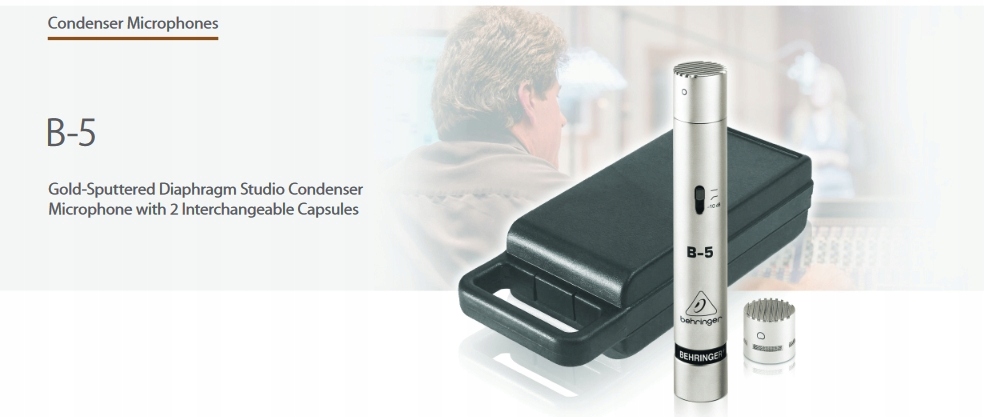 ОДНОДИАФРАГМНЫЙ КОНДЕНСАТОРНЫЙ МИКРОФОН BEHRINGER B-5 - Студийный конденсаторный микрофон с диафрагмой с золотым напылением и двумя сменными капсюлями