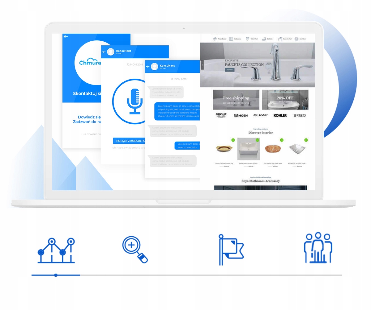 Напишем адаптивный RWD-магазин — на основе лучших практик создания магазина, адаптированного под мобильные устройства, такие как мобильные телефоны, смартфоны, планшеты. Специализированный внешний вид более эффективен, чем готовые шаблоны. Он обеспечивает быструю загрузку страниц, обеспечивая эффективный и безопасный просмотр магазина и лучшее положение в поисковой системе благодаря коду веб-сайта, оптимизированному для поисковой системы Google.