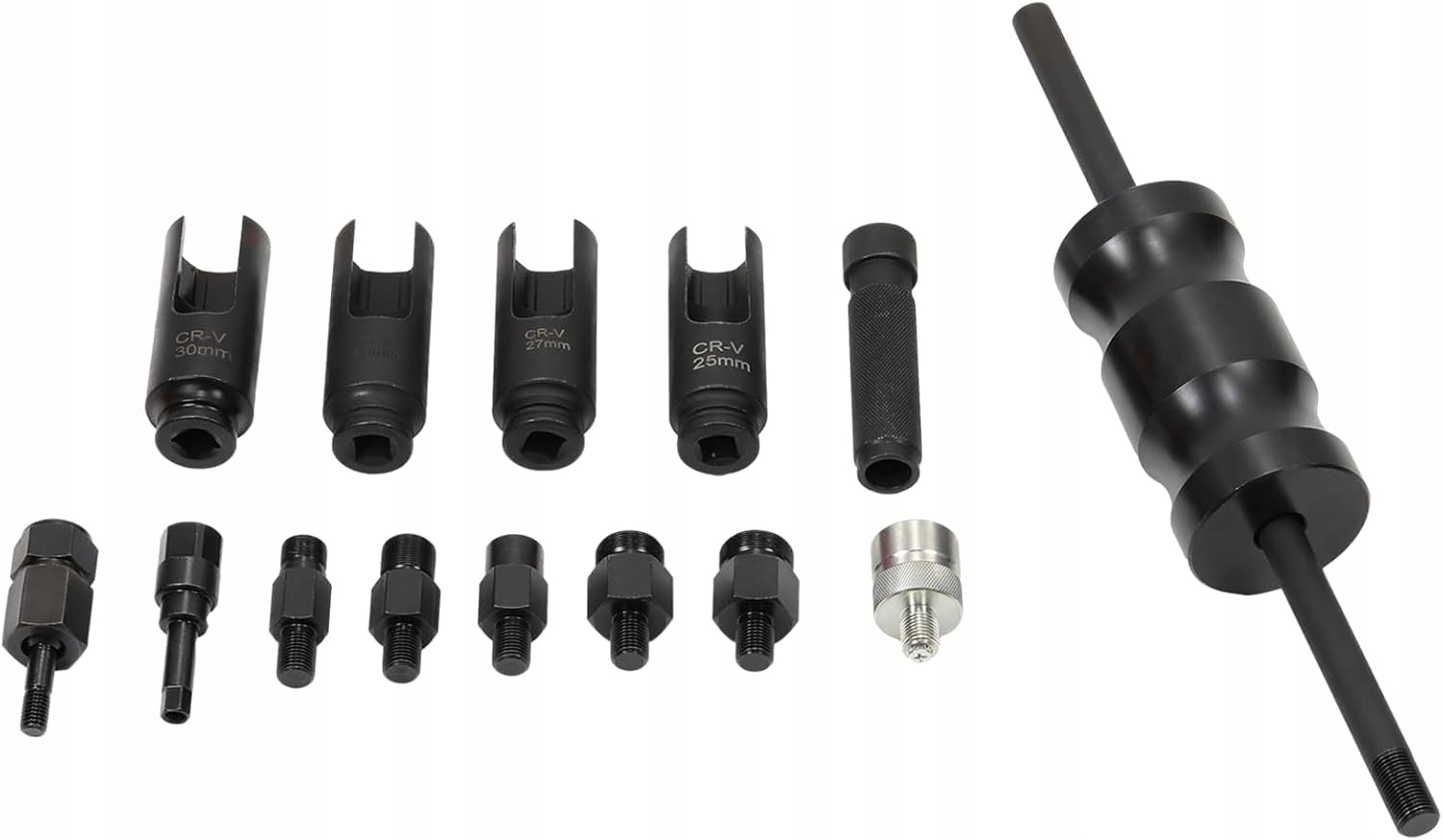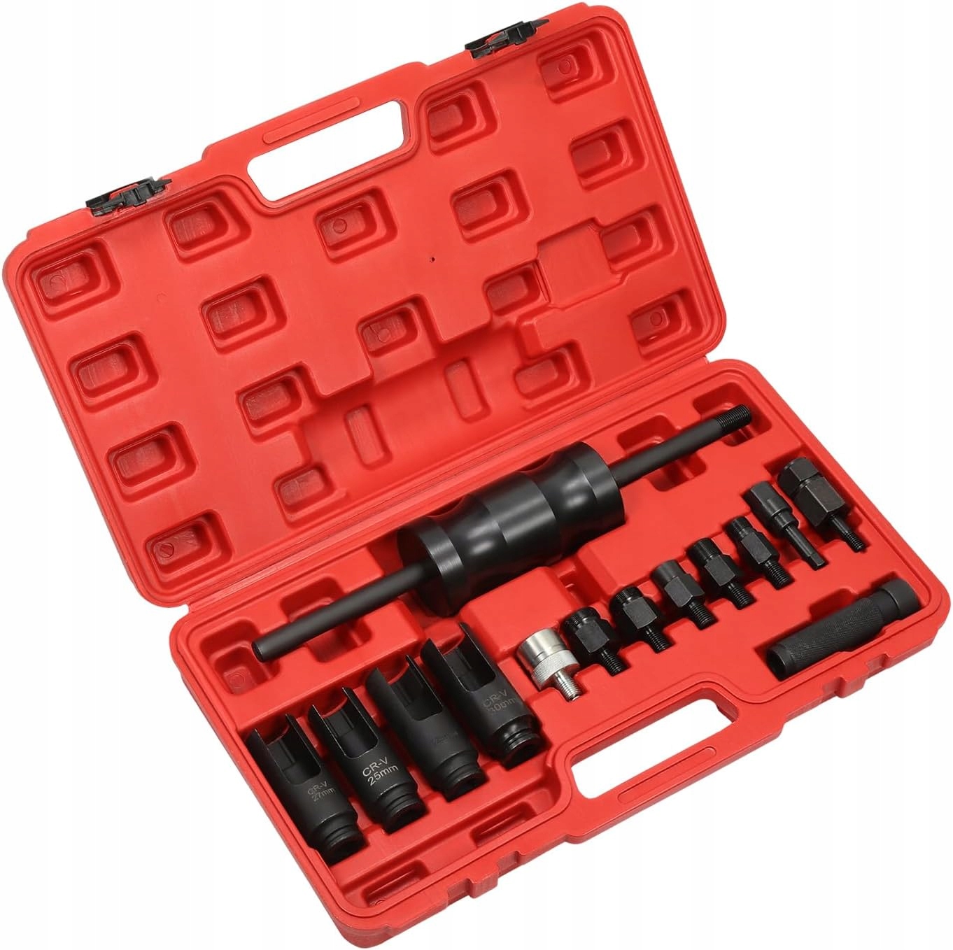 Комплектация – включает в себя различные виды съемников: инерционный молоток, резьбовые переходники и насадки, что позволяет правильно подобрать инструмент для конкретного типа форсунок.