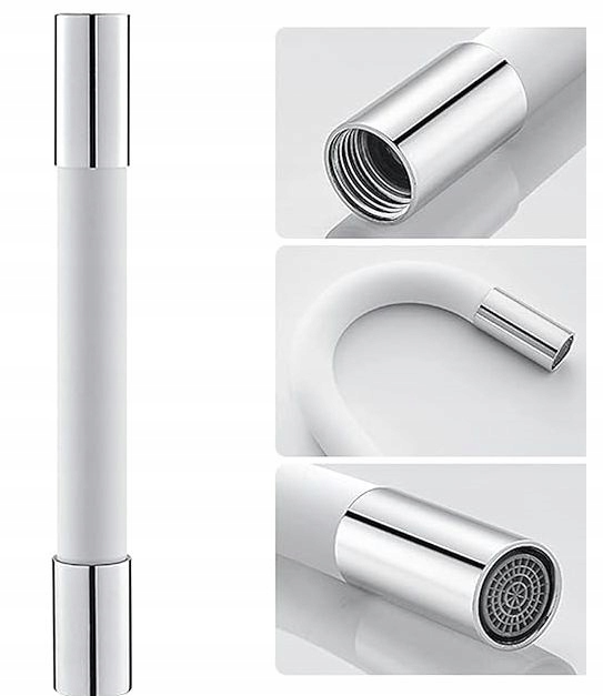 WYLEWKA PRZEDŁUŻKA PERLATOR BATERII KRANU ELASTYCZNA 360° KUCHENNA BIAŁA