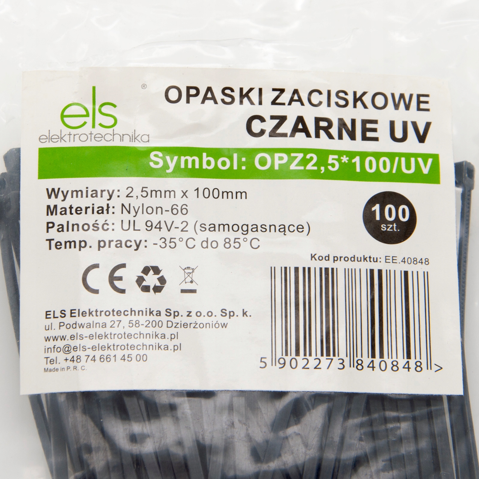 Стяжки кабельные ELS Elektrotechnika 2,5х100мм, черные, в коллективной упаковке 100 шт.