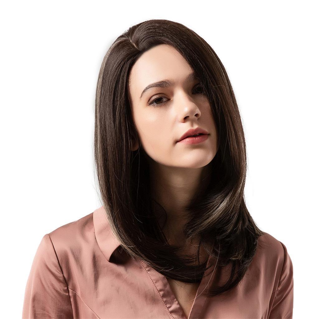 Смешанные коричневые боковые части 18-дюймовые синтетические парики с длинными прямыми волосами цвета боб для женщин и девочек
