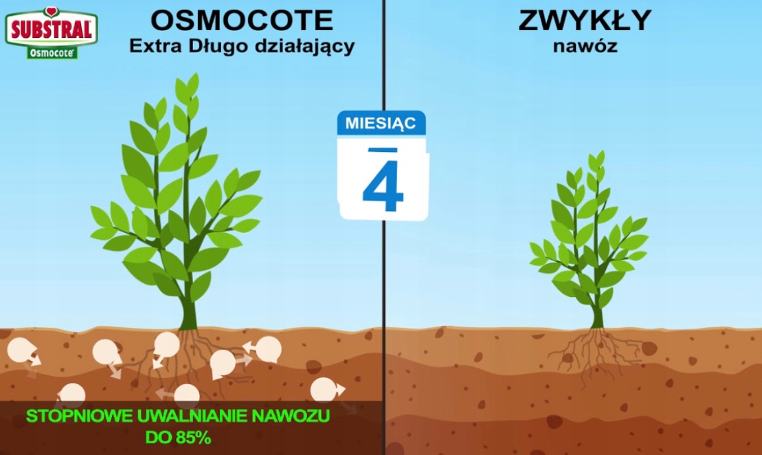 Ухоженный сад требует постоянных удобрений на протяжении всего вегетационного периода. Субстрал Осмокот – удобрение длительного действия для всех цветочных и садовых растений: плодовых и декоративных кустарников, многолетников, клубники, плодовых и декоративных деревьев, балконных цветов. Правильно подобранные ингредиенты удобрений Osmocote отвечают потребностям этих растений и гарантируют видимый эффект в течение сезона. Уникальная формула полимерного покрытия способствует постепенному высвобождению удобрений в почву под воздействием влажности и температуры почвы.