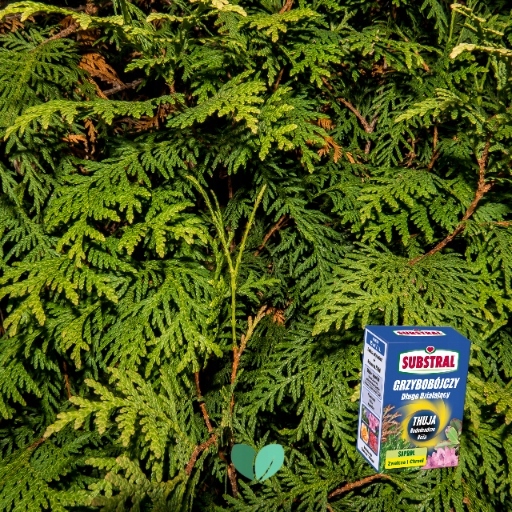 Фунгицид длительного действия, ограничивающий побурение туи, вызванное отмиранием чешуек и побегов. Он действует системно – проникает глубоко в растение и циркулирует с его соками не менее 3 недель. После применения отрежьте все коричневые ветки, которые не вырастут снова, но остальная часть растения будет защищена в течение нескольких недель. Эти виды средств гораздо эффективнее обычных препаратов, которые действуют только локально в течение 1-2 дней и легко смываются дождем. Он также защищает растение от нового роста. Можно использовать профилактические меры, особенно в случае новых посадок, особенно когда растение, пересаженное в новую среду, более ослаблено и подвержено заболеваниям.
