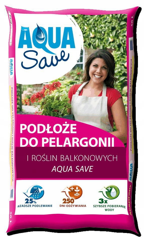 В субстрате можно успешно выращивать герань, а также многие другие виды балконных цветов, которые для красивого цветения требуют обильного полива и удобрений. Этот продукт, как и другие субстраты из линейки Aqua Save, помимо многокомпонентного удобрения содержит еще и удобрение пролонгированного действия в оболочке.