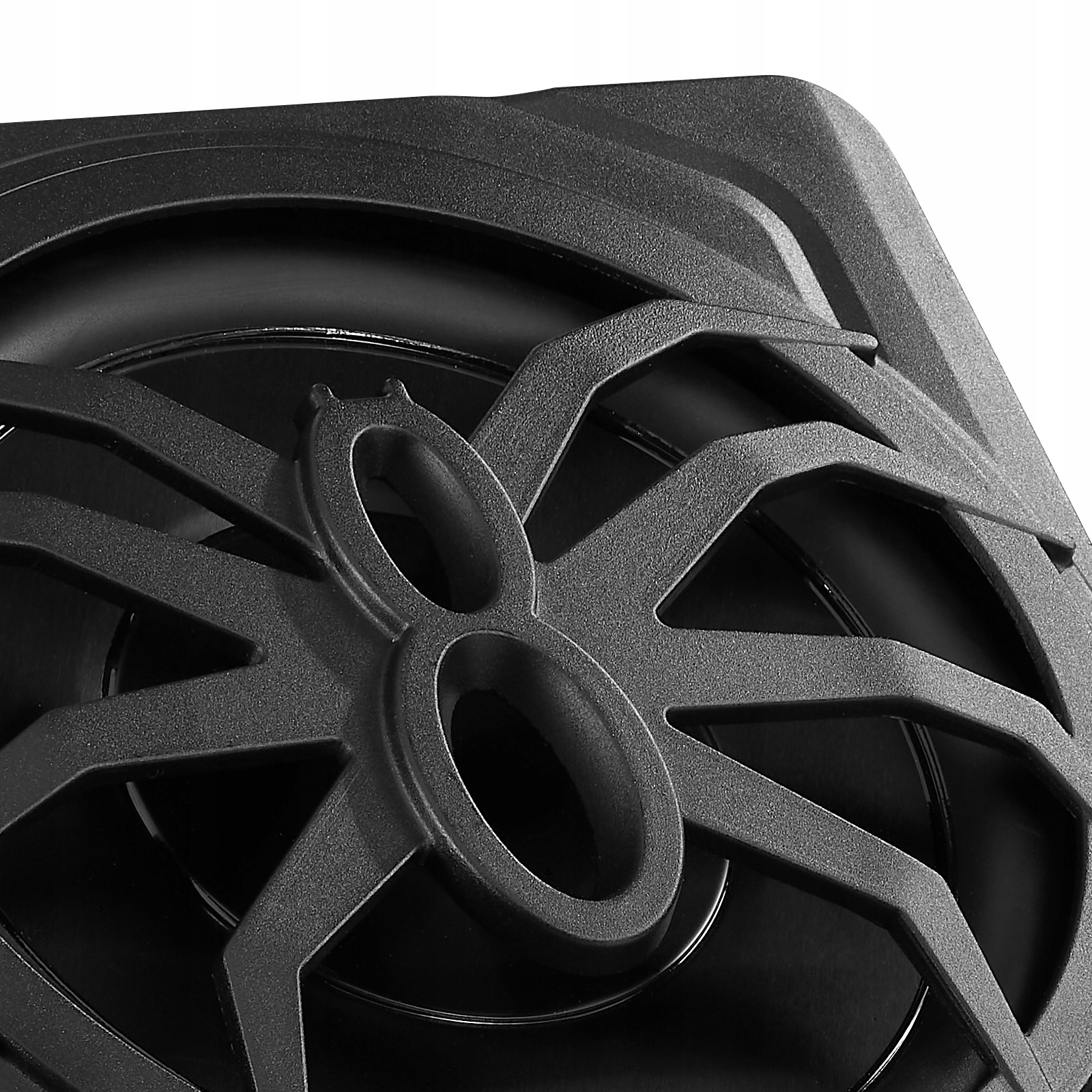 Этот сабвуфер под сиденьем с толщиной всего 3,3 дюйма (85 мм) является отличным решением в случае плотных пространств и легко подходит под большинством автомобильных сидений. Постоянное монтаж поднимает сабвуфер, чтобы уменьшить резонанс с автомобильным шасси, что предотвращает возможное искажение звука.