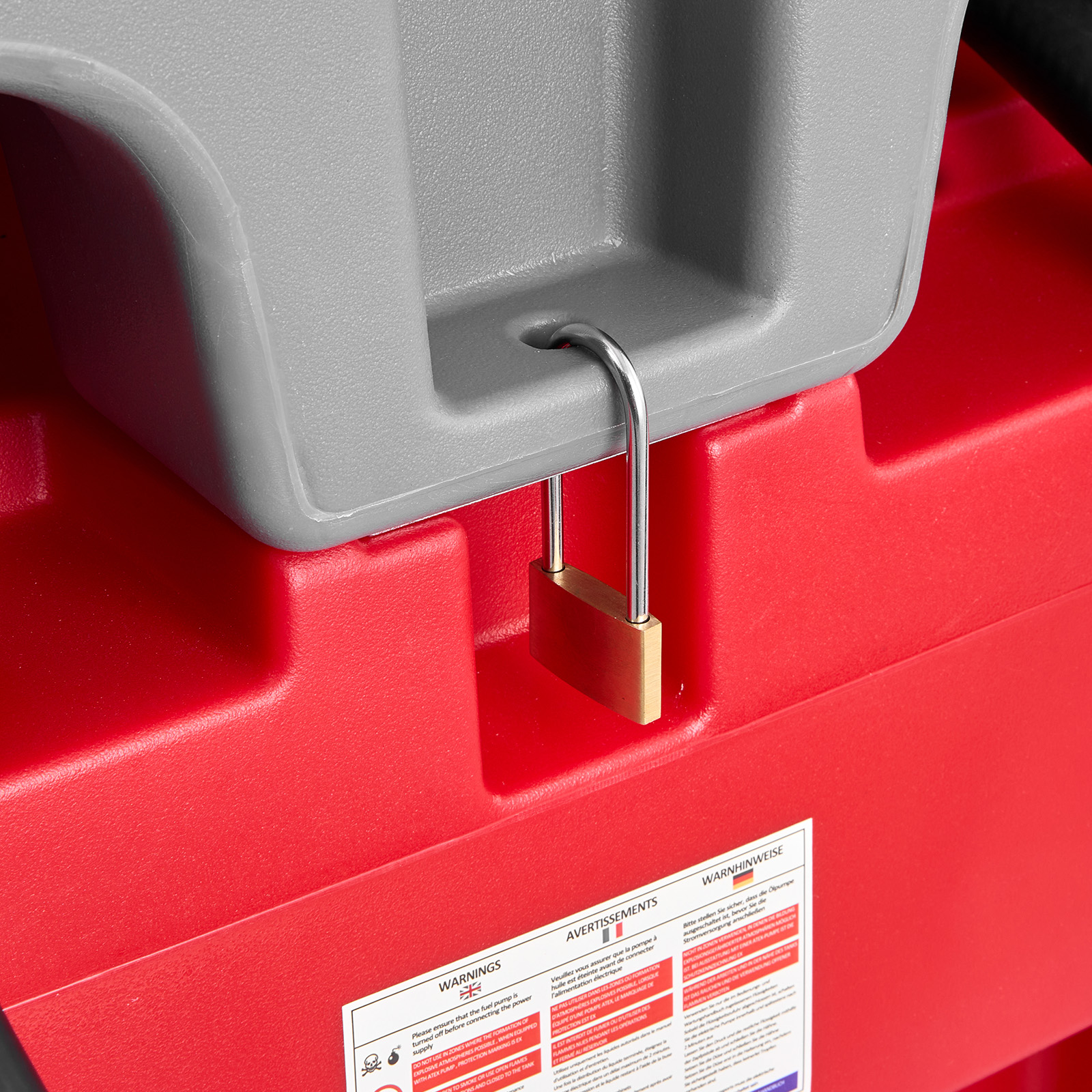 Надежная конструкция бака: Цвет: красный. Наш переносной дизельный бак изготовлен из высококачественного полиэтилена, что делает его устойчивым к погодным условиям и ультрафиолетовому излучению. Верхняя крышка закрывается медным замком, который защищает от кражи и обеспечивает безопасность эксплуатации. Поставьте бак на первое место и выполните работу правильно.