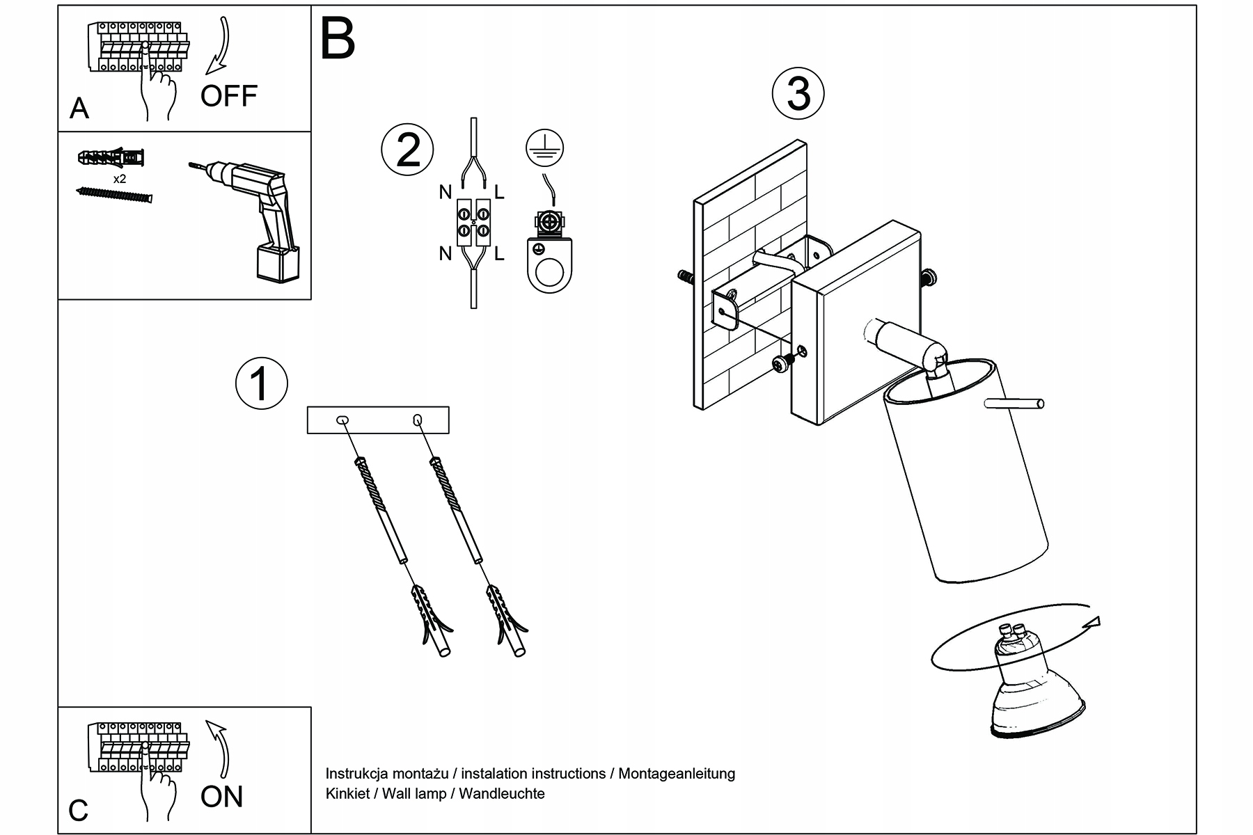Источник света: GU10, 1х40Вт, 50Гц, 220В, IP20