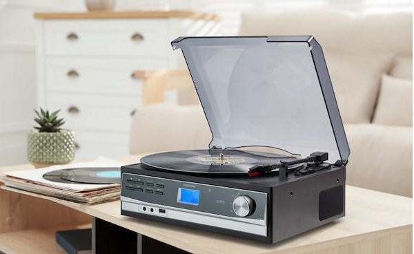 Сочетание классического механизма с современной электроникой в одной модели дает гораздо больше возможностей, чем наличие проигрывателя и радио по отдельности, а также экономит место. Проигрыватель Medion имеет два динамика, если вы захотите его расширить, вы можете легко подключить внешние динамики через выход AUX. Однако если вы предпочитаете наслаждаться музыкой индивидуально, вы наверняка оцените разъем для наушников 3,5 мм. Все это дополняется ЖК-дисплеем с синей подсветкой.