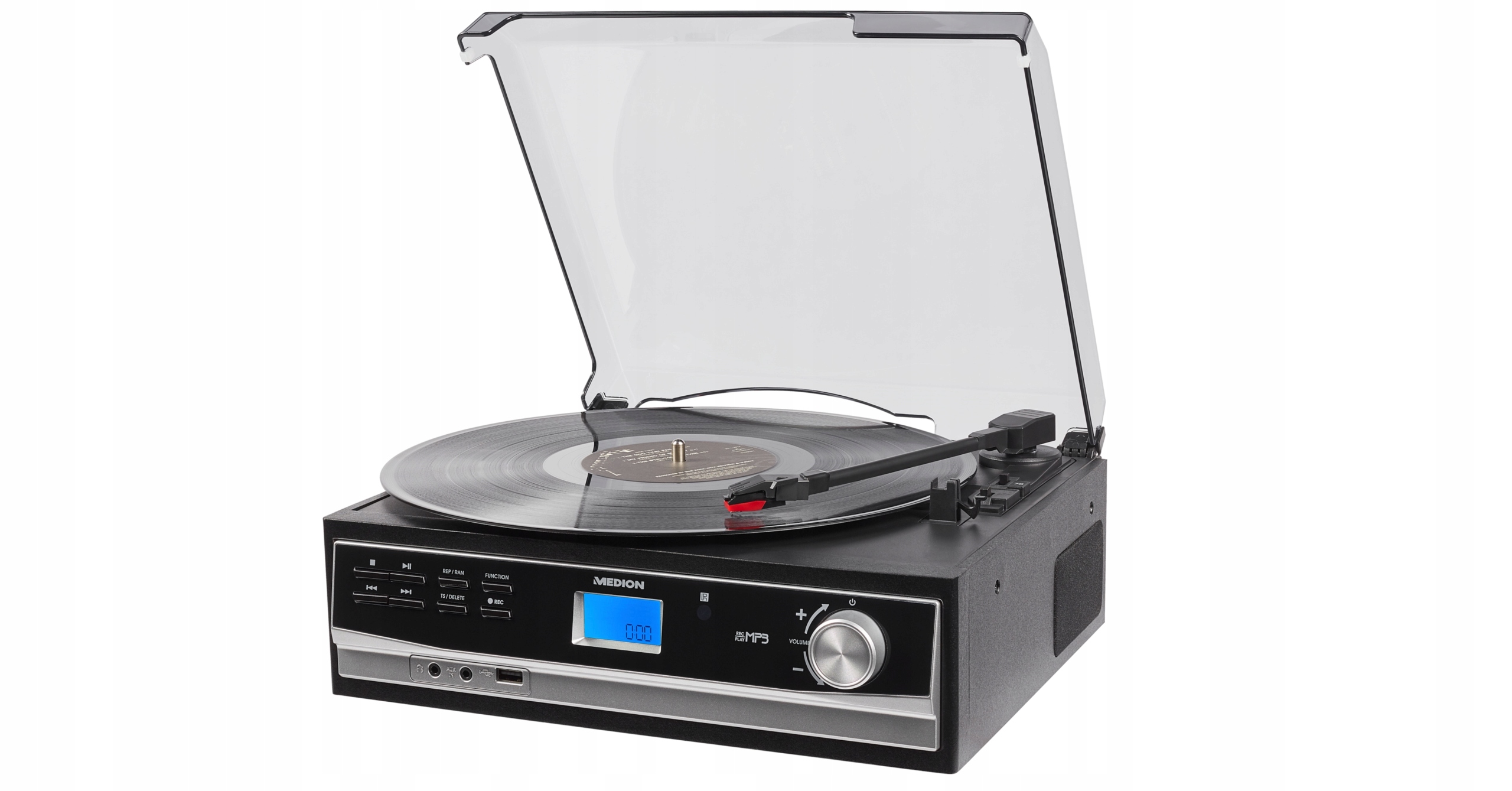 Современный проигрыватель Medion – настоящее удовольствие для любителей классического звука. Вы можете использовать его для воспроизведения виниловых пластинок на одной из трех скоростей: 33/45/78 об/мин. Проигрыватель подарит совершенно новые впечатления от прослушивания любимых пластинок и кассет. При конвертировании вы сохраняете музыку непосредственно на USB-накопитель или MP3-плеер, который можно использовать в качестве съемного носителя для использования со всеми популярными устройствами воспроизведения. Вам не придется ни о чем беспокоиться — если хотите, дигитайзер даже разделит за вас заголовки. В плеере есть встроенные динамики, поэтому дополнительный усилитель вам не понадобится. Однако вы можете использовать аудиоразъем для расширения акустической системы.