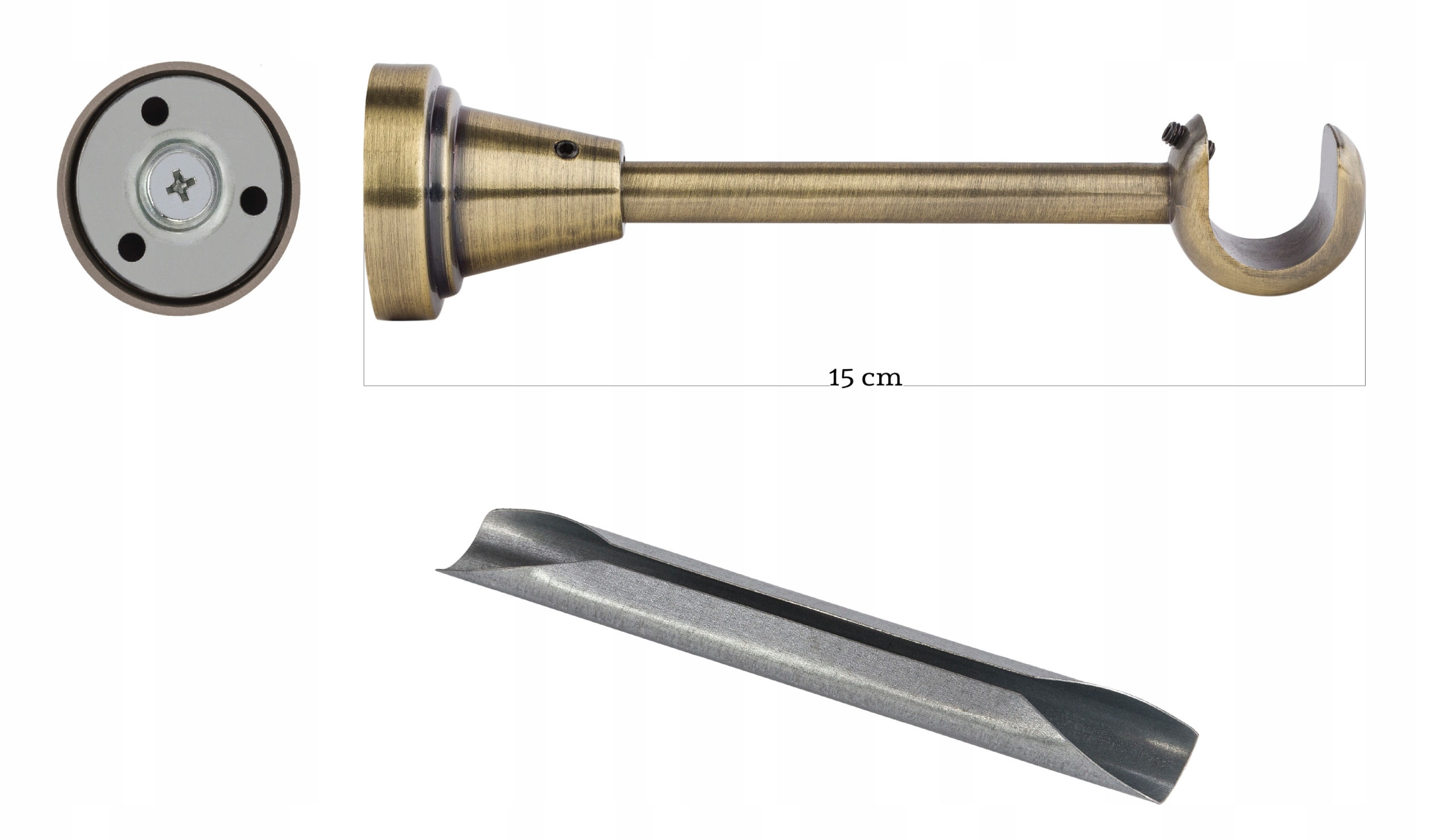 Ширина карниза 320 см, это размер двух соединенных трубок. Декоративные наконечники удлиняют карниз в зависимости от выбранной модели наконечника. Стальной внутренний соединитель надежно соединяет трубки. Кронштейн прекрасно скрывает соединение трубок.