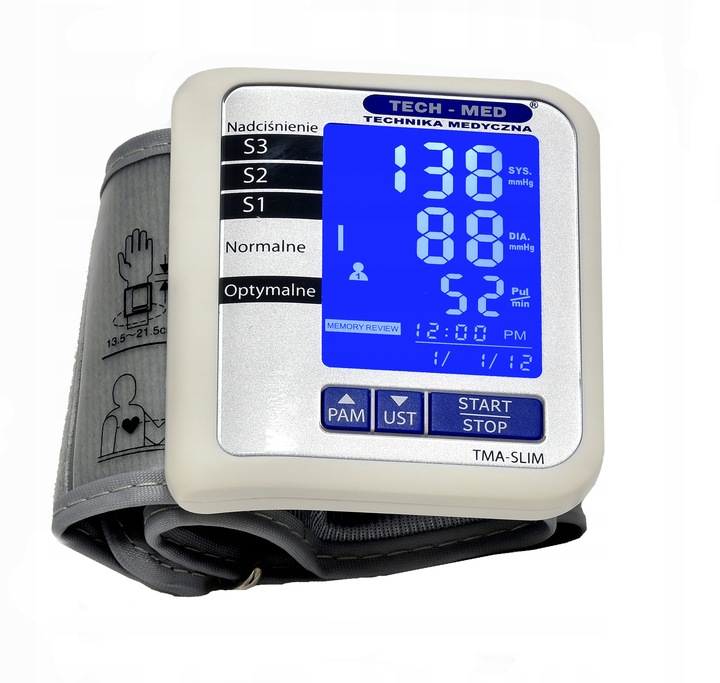 TMA-SLIM — это полностью автоматизированное устройство для измерения артериального давления и частоты пульса, которое носится на запястье. Прибор прост в использовании и идеально подходит для повседневных измерений. Это современный электронный тонометр с передовой технологией «MWI». Большой дисплей позволяет легко считывать систолическое, диастолическое и пульсовое давление после каждого измерения. Уровень давления воздуха в манжете программируется автоматически, в соответствии с индивидуальным систолическим (систолическим) давлением пациента.