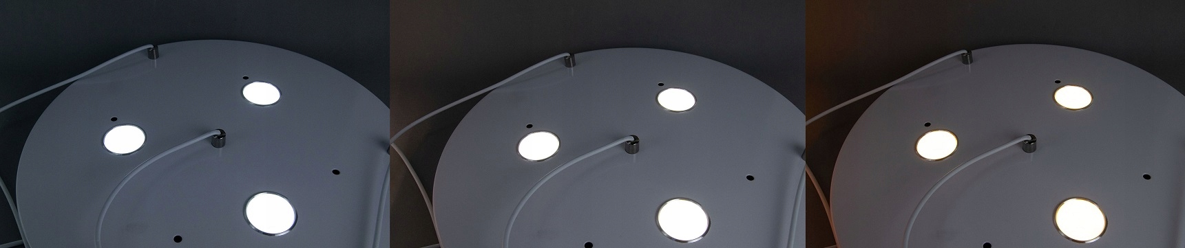 - Каждое последующее включение и выключение светильников заставляет нас получать разный цвет света: от холодного белого, теплого белого до очень теплого.