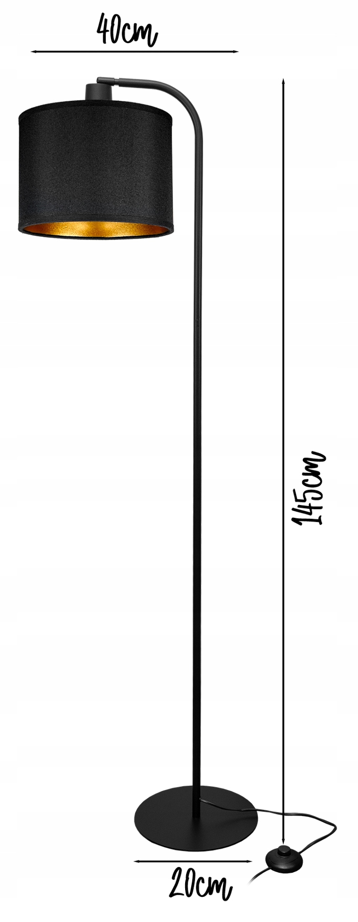 СУЧАСНИЙ ТОРШЕР 145 СМ ЧОРНО-ЗОЛОТИЙ АБАЖУР 20 СМ LED