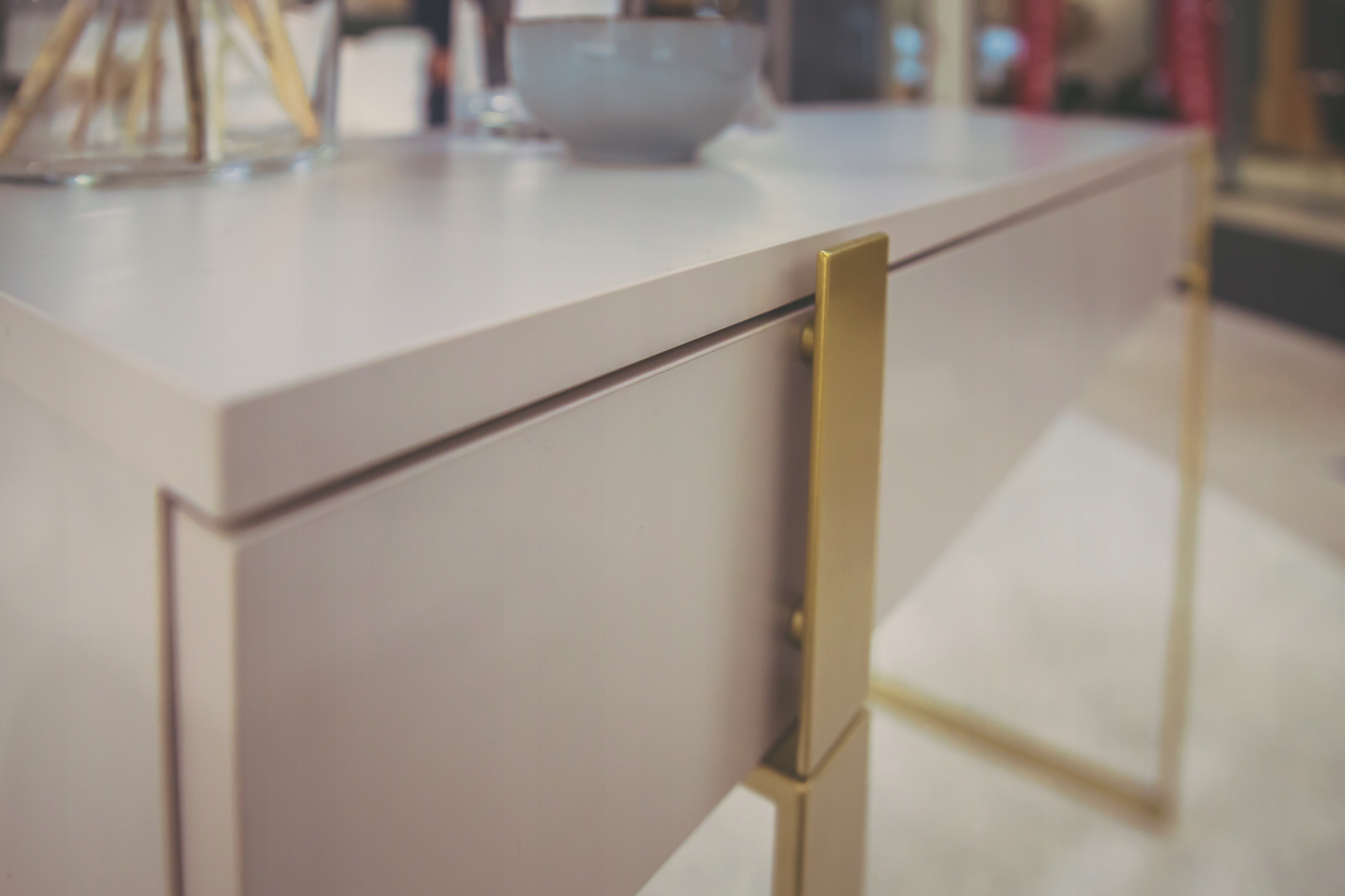 Бежевый цвет с матовым покрытием идеально подойдет для гламурного стиля и идеально впишется в скандинавские бохо, скандинавские или современные минималистские композиции. Эта простая форма дает вам столько возможностей для компоновки, что у вас никогда не закончатся идеи для нового интерьера. Гладкая лицевая панель дополнена золотыми ручками, подчеркивающими стильный дизайн консоли.