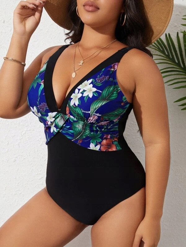 Цельный купальник плюс размер печатные цветы размер 46 (PS7-1)