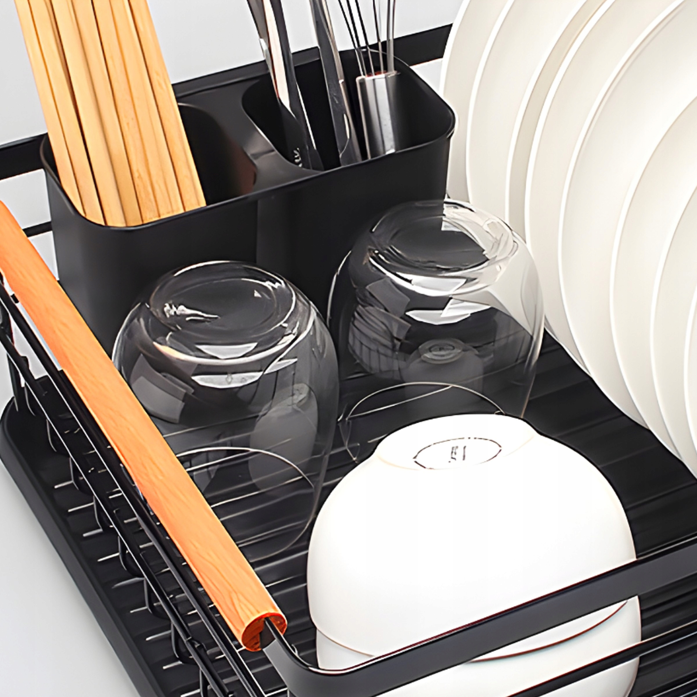 Сосудистая сушилка с дряблом с подносом на тарелках.