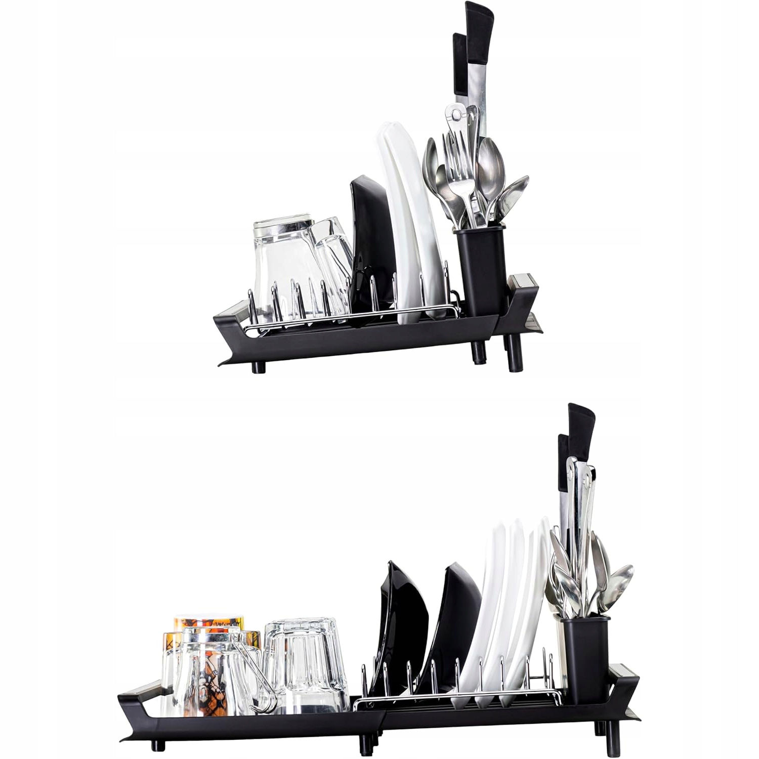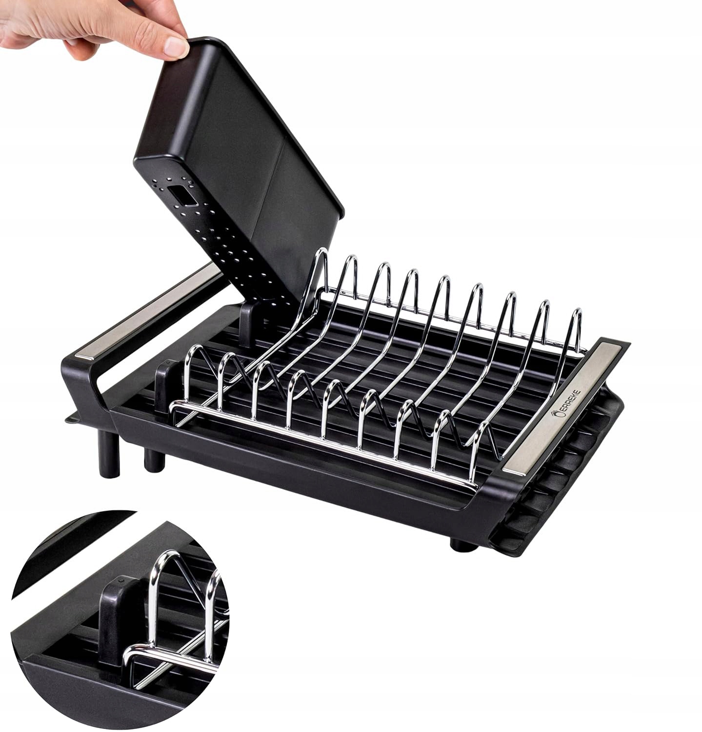 Блюда максимизируют поверхность сушки, не занимая много места. Идеально подходит для сушильных тарелок, очков, чашек, маленьких горшков, столовых приборов и кухонной посуды на небольших кухнях.