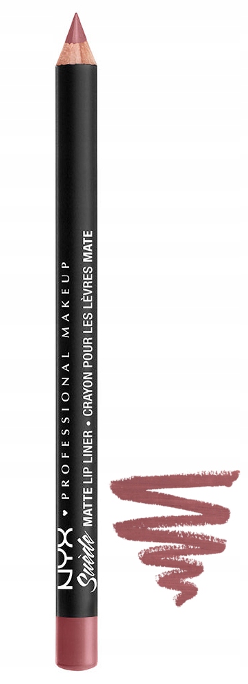 SUDE MATTE LIP LINER от NYX Professional Makeup. Карандаш для губ. Его можно использовать для обрисовки и заполнения контуров. Он прекрасно сохраняет помаду в сохранности долгое время. Оставляет матовый финиш, что делает его пригодным для работы со всеми типами помад с одинаковым эффектом. Продукт доступен в 24 оттенках на основе цветов Liquid Suede Cream Lipstick, Matte Lipstick и Soft Matte Lip Cream.