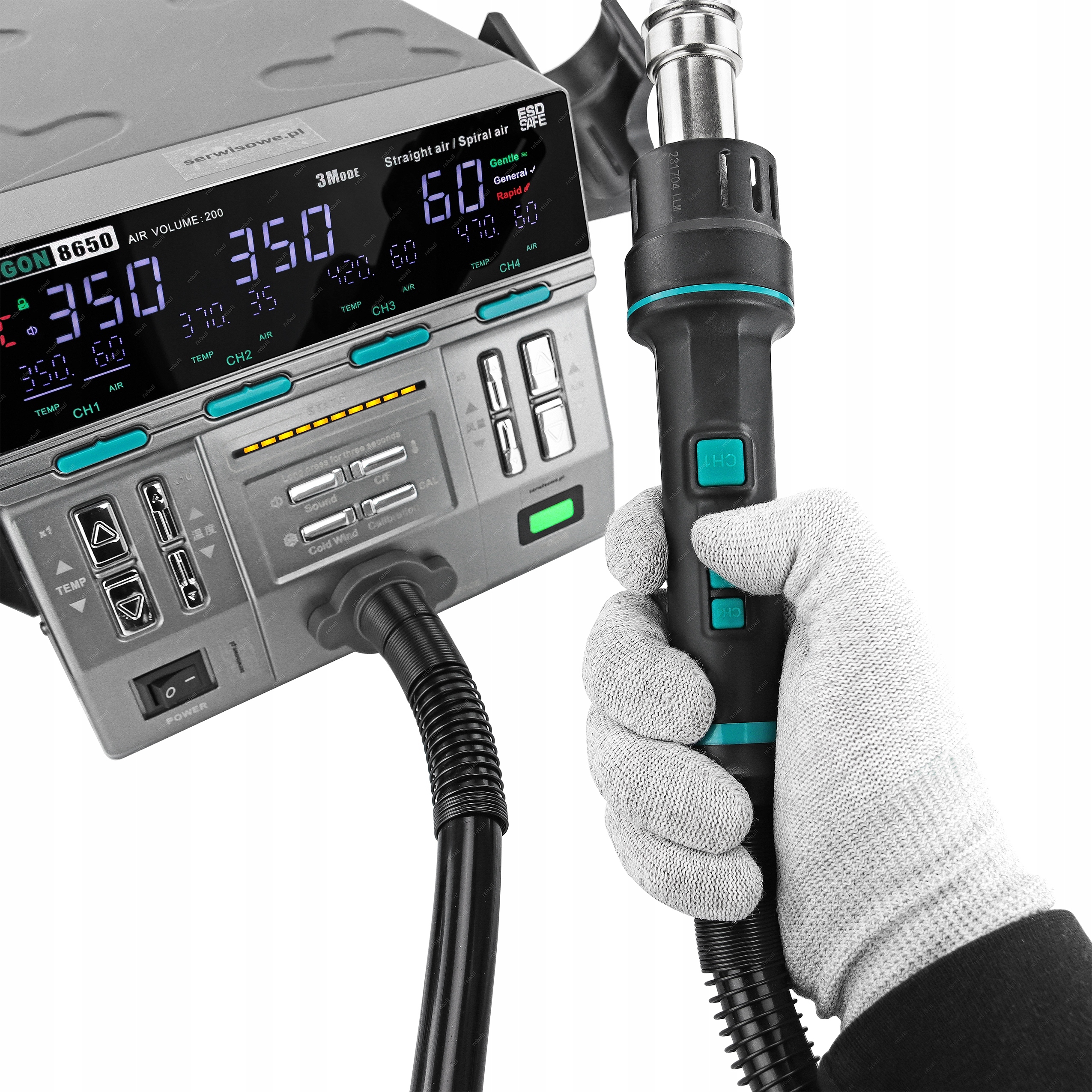 SUGON 3MODE 8650 1300W на данный момент является самой современной паяльной станцией HOT AIR с обдувом горячим воздухом. Он в очень широкой степени отвечает всем требованиям, предъявляемым к станциям такого типа, представленным на рынке.