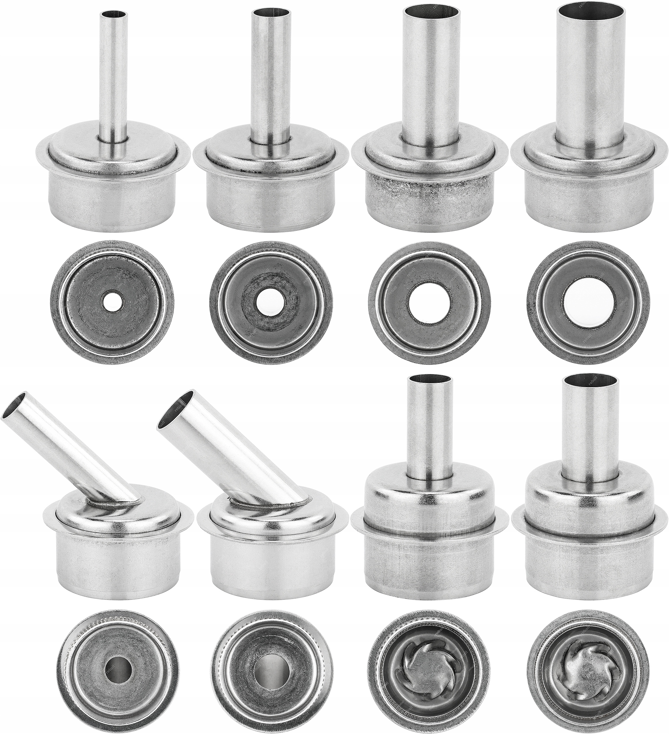 - сменные насадки горячего воздуха: 8 шт. включая два спиральных генератора воздушного потока,