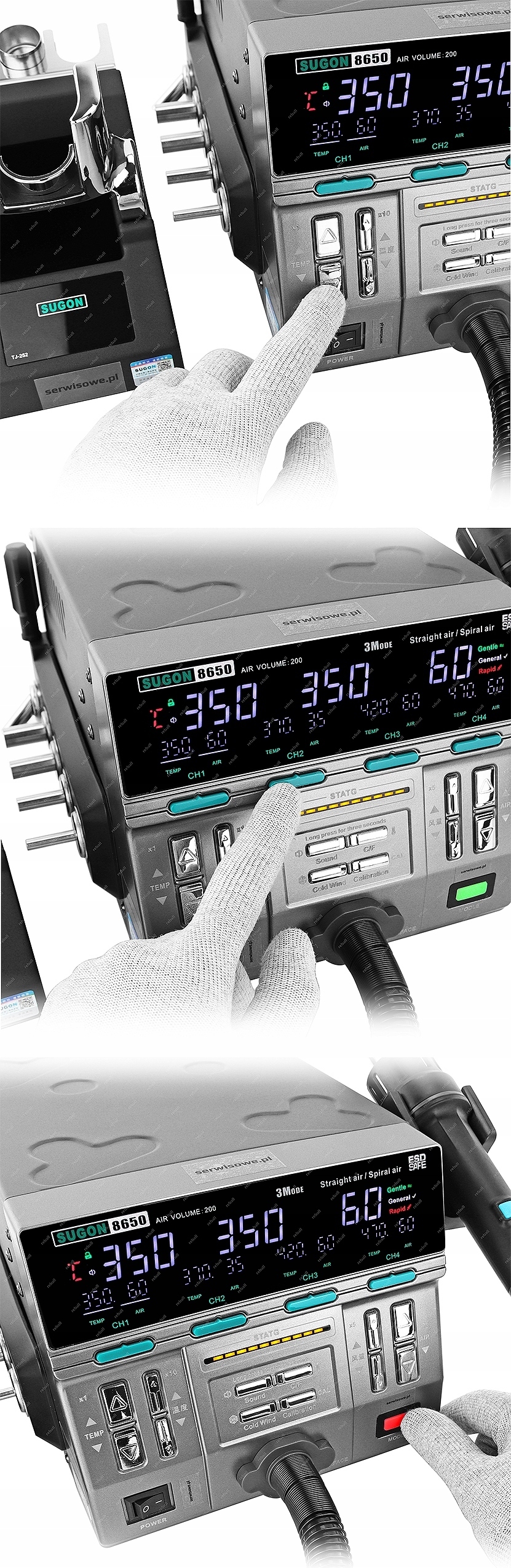 SUGON 3MODE 8650 1300W на данный момент является самой современной термовоздушной паяльной станцией с обдувом горячим воздухом. Он в очень широкой степени отвечает всем требованиям, предъявляемым к станциям такого типа, представленным на рынке.